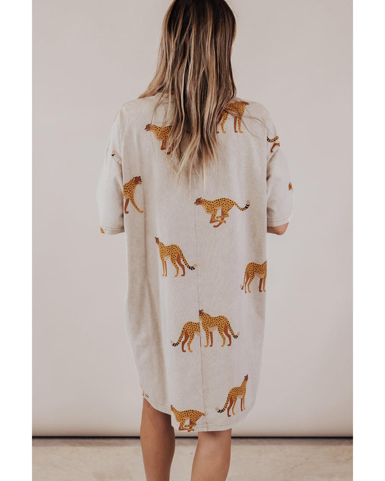 Apricot Plus Size Cheetah Print Side Pockets T Shirt Mini Dress – 3X