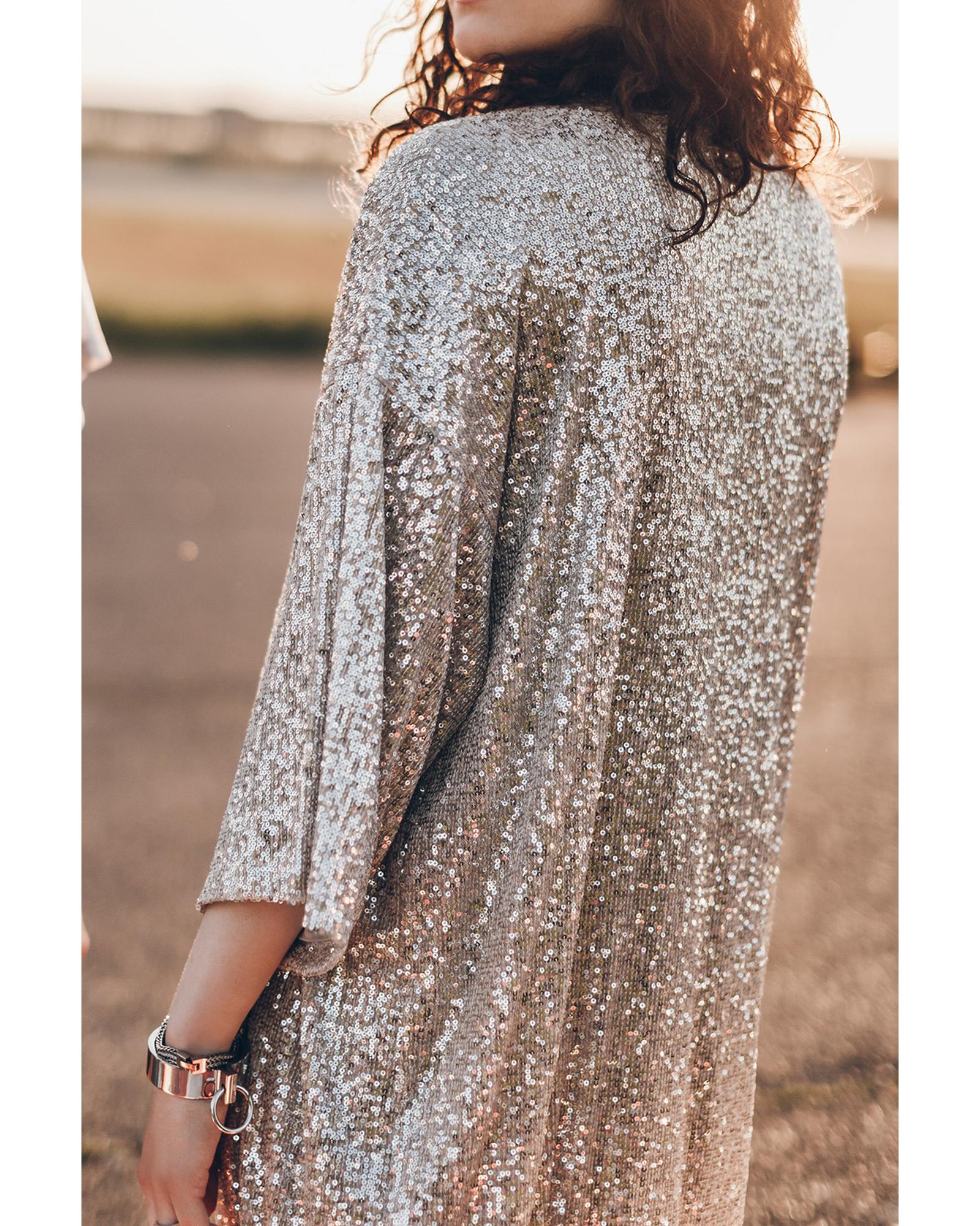 - Apricot Sequin 3/4 Sleeve Open Front Duster Kimono