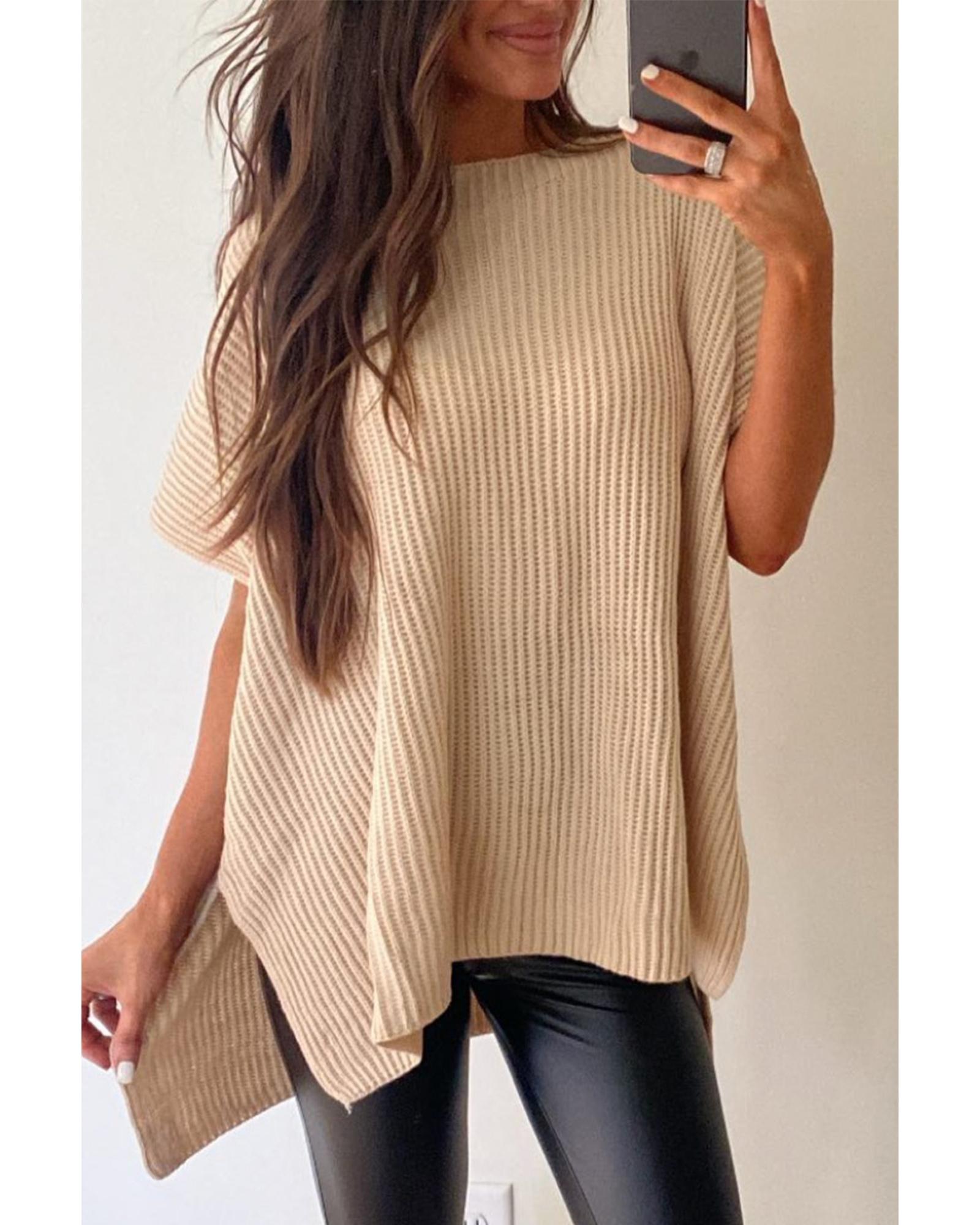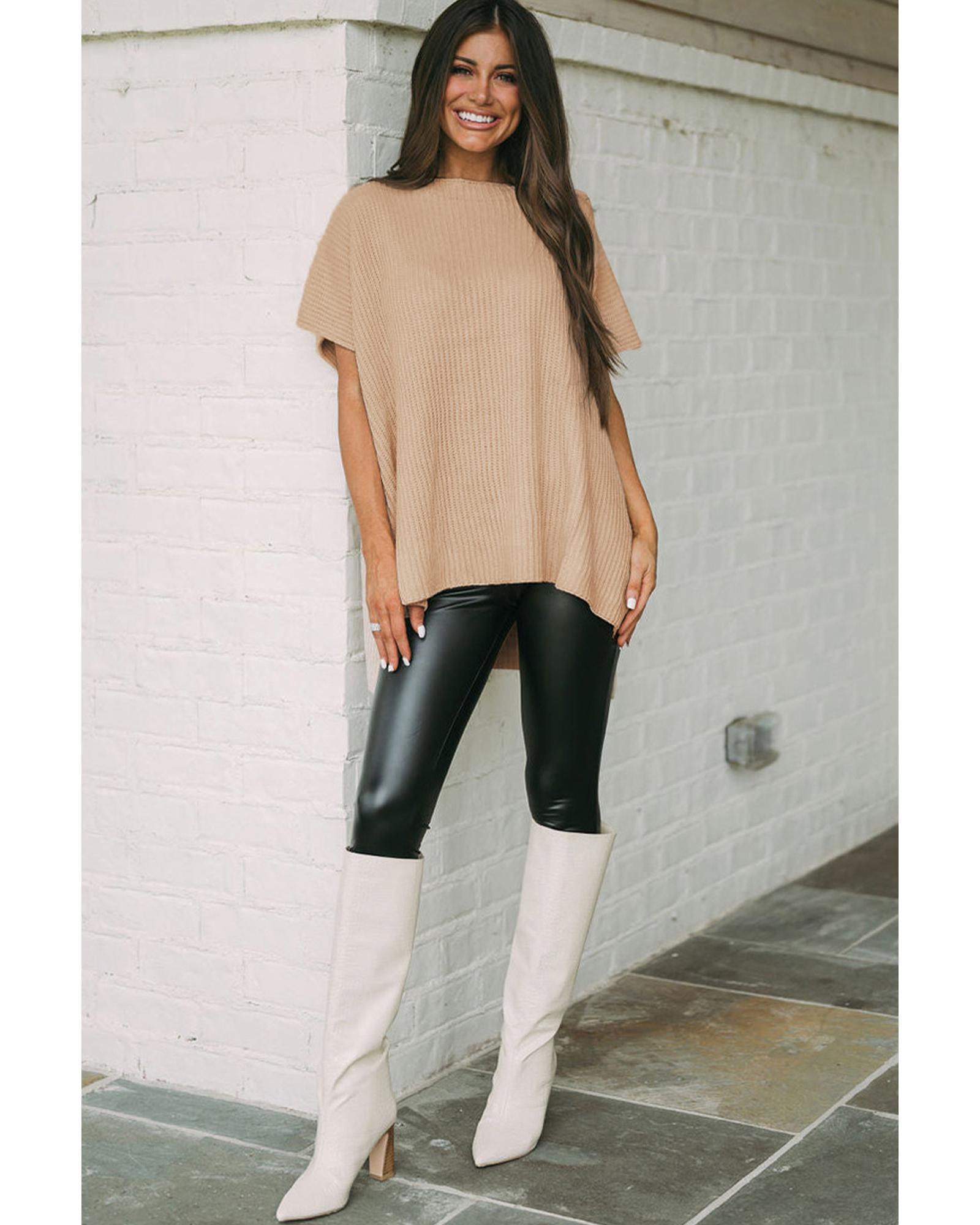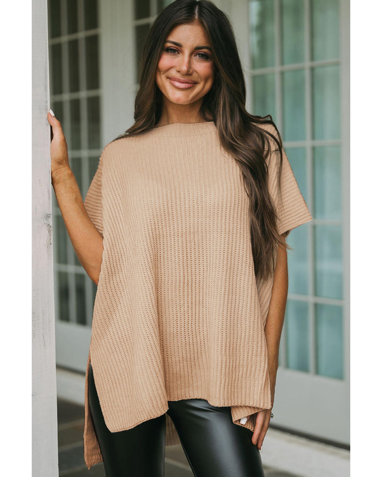 Apricot Short Sleeve Side Slit Oversized Sweater – M