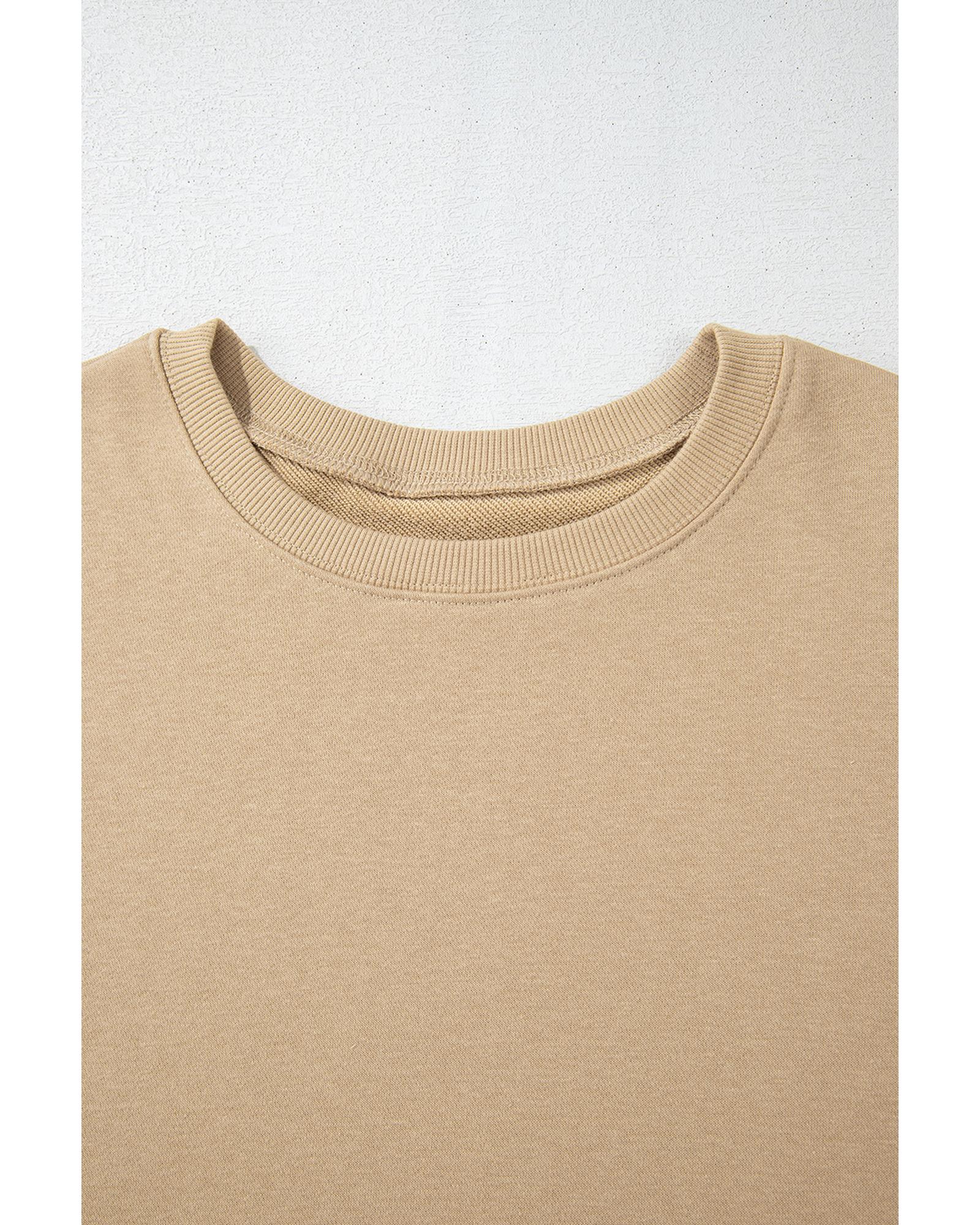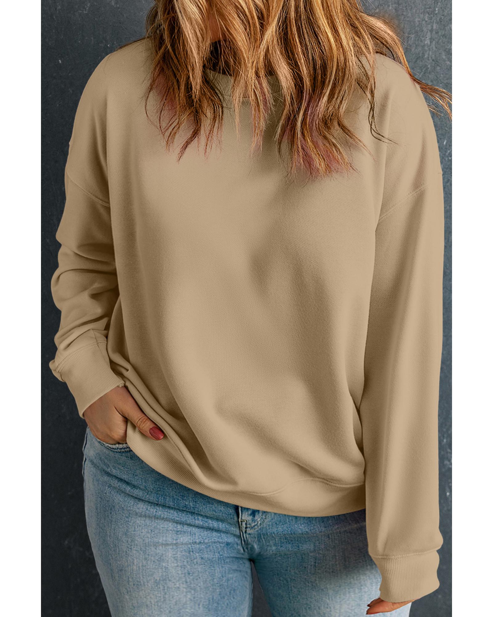Apricot Solid Crew Neck Drop Shoulder Plus Size Sweatshirt - 3X