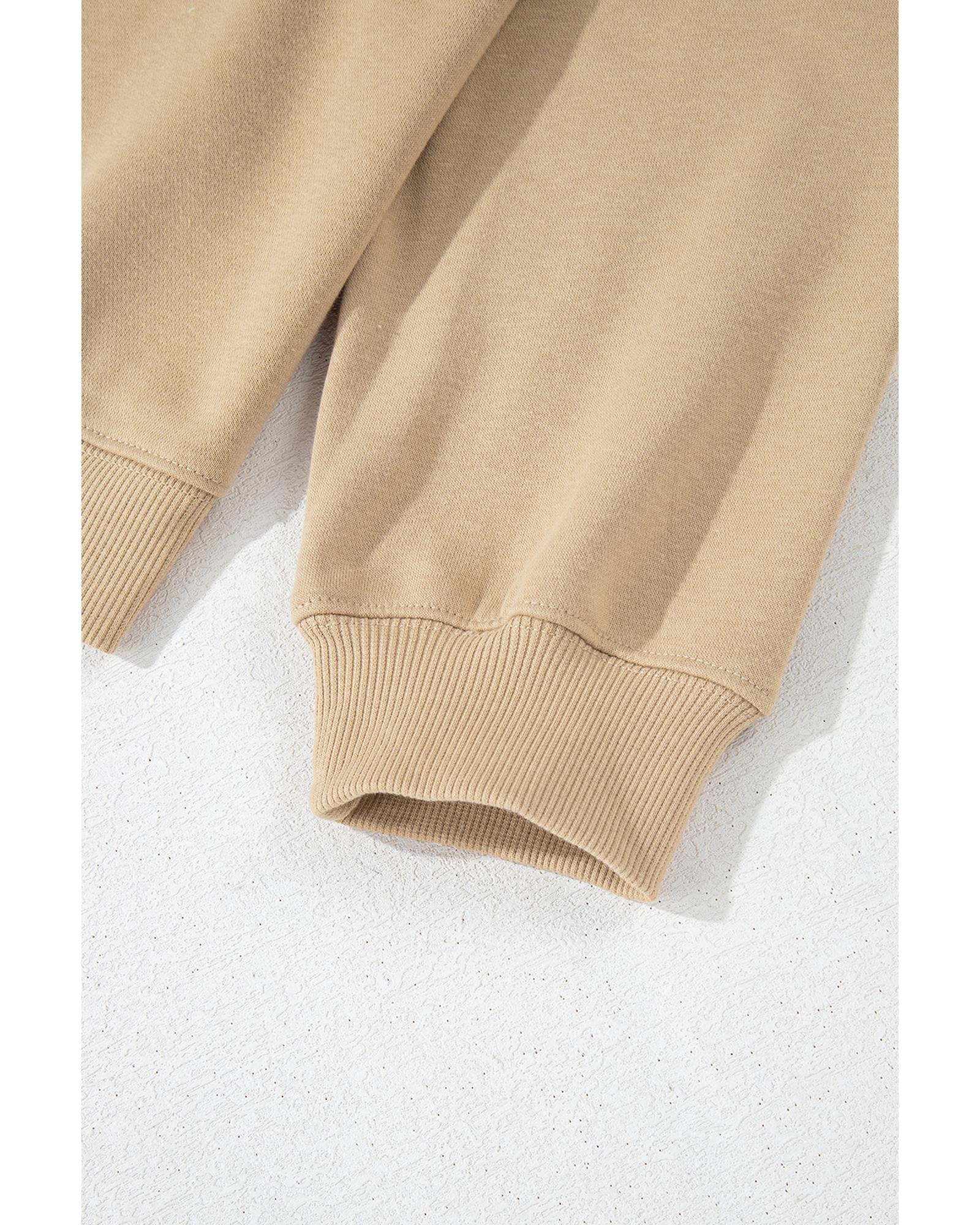 Apricot Solid Crew Neck Drop Shoulder Plus Size Sweatshirt - 1X
