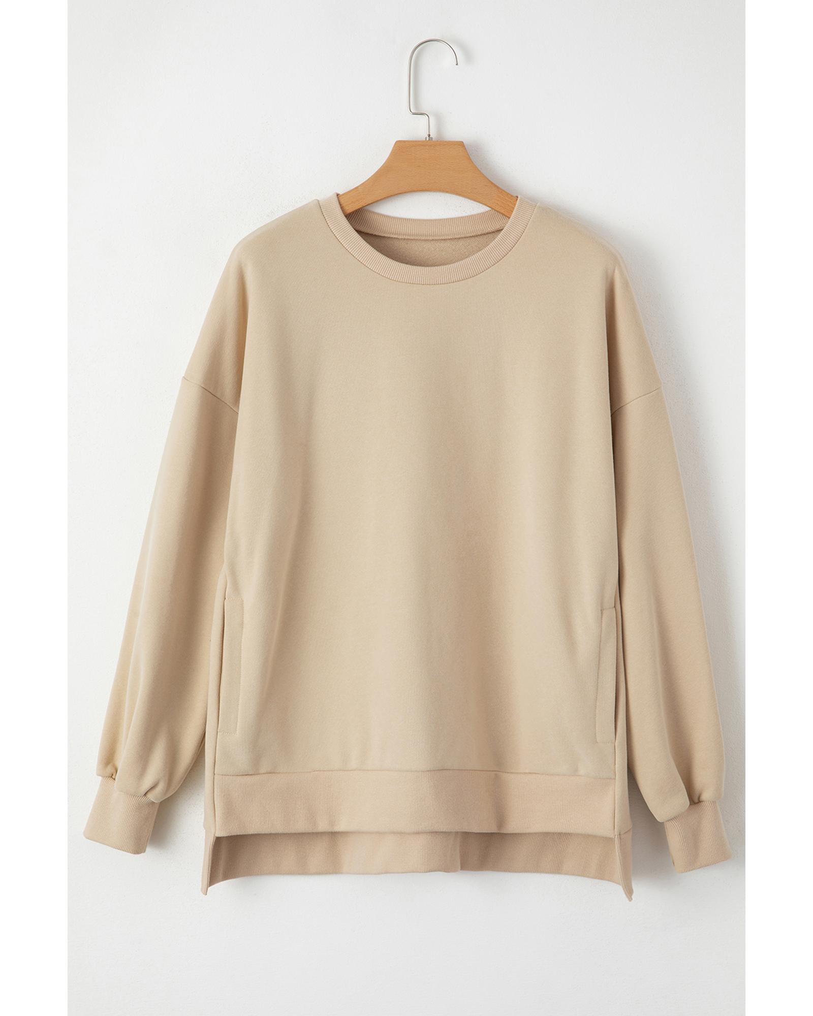 Apricot Solid Fleece Lined Drop Shoulder High Low Sweatshirt – 2XL