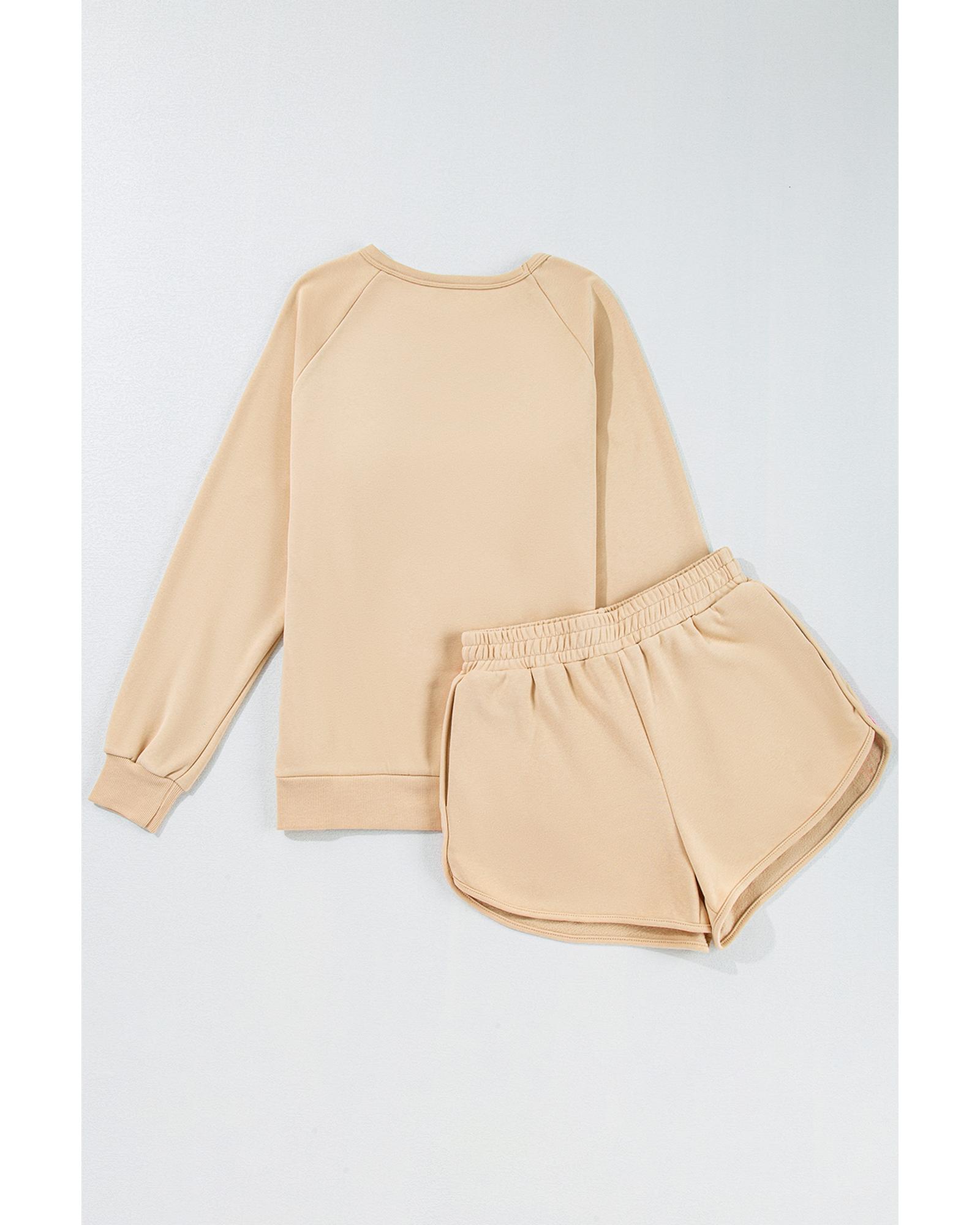 Apricot Striped Accent Pullover and Shorts Two Piece Casual Set – S