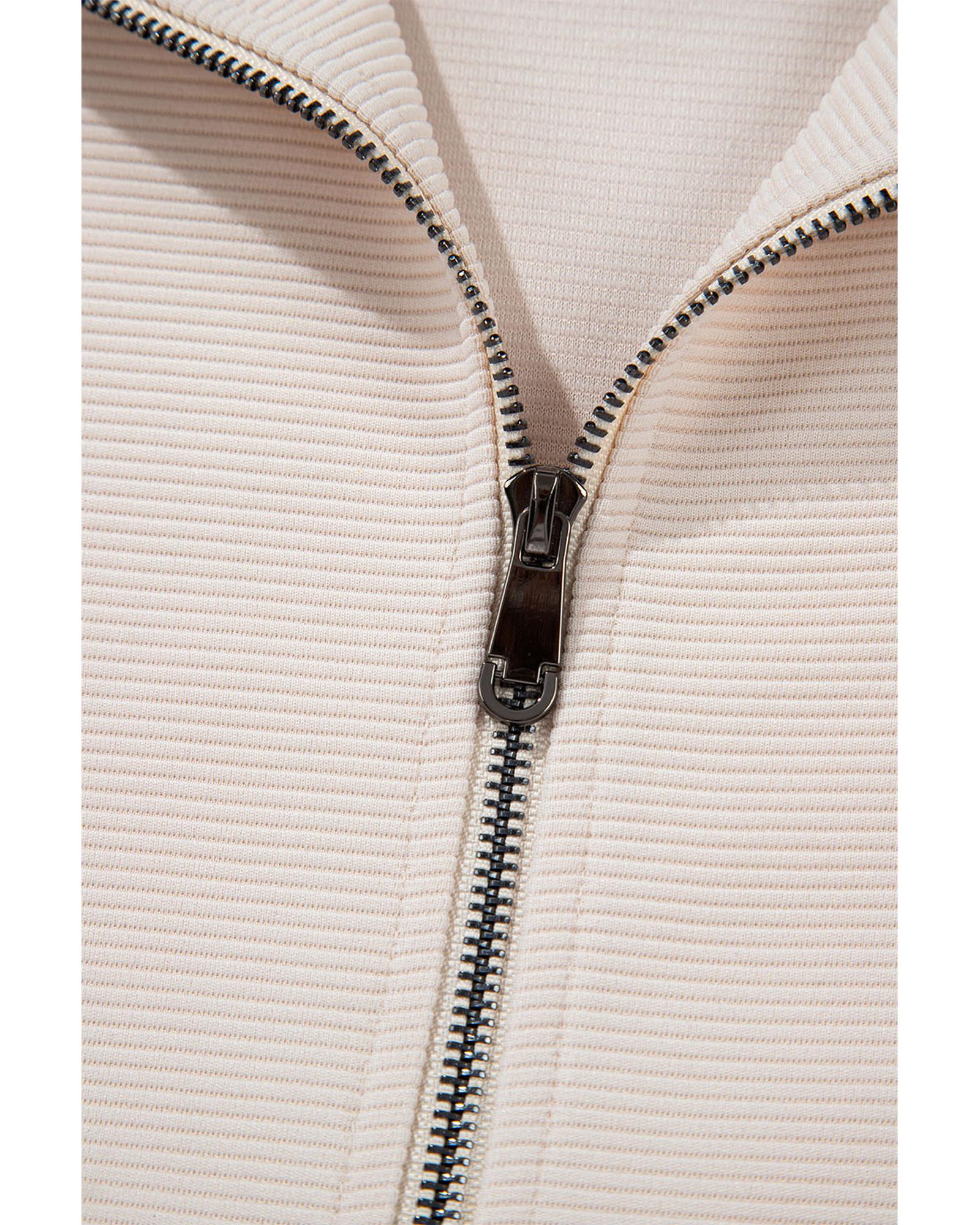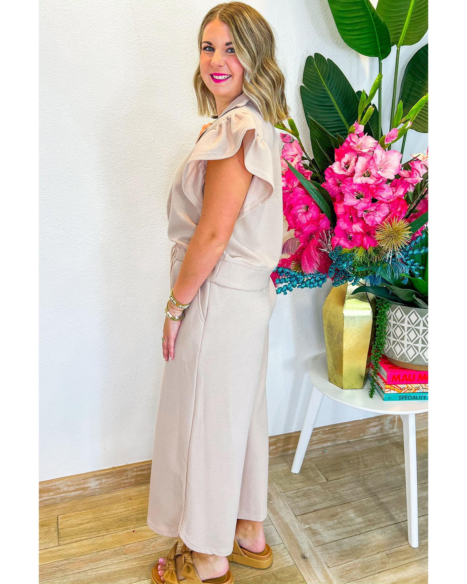 Apricot Textured Ruffled Sleeve Zipped Top and Wide Leg Pants Set – XL