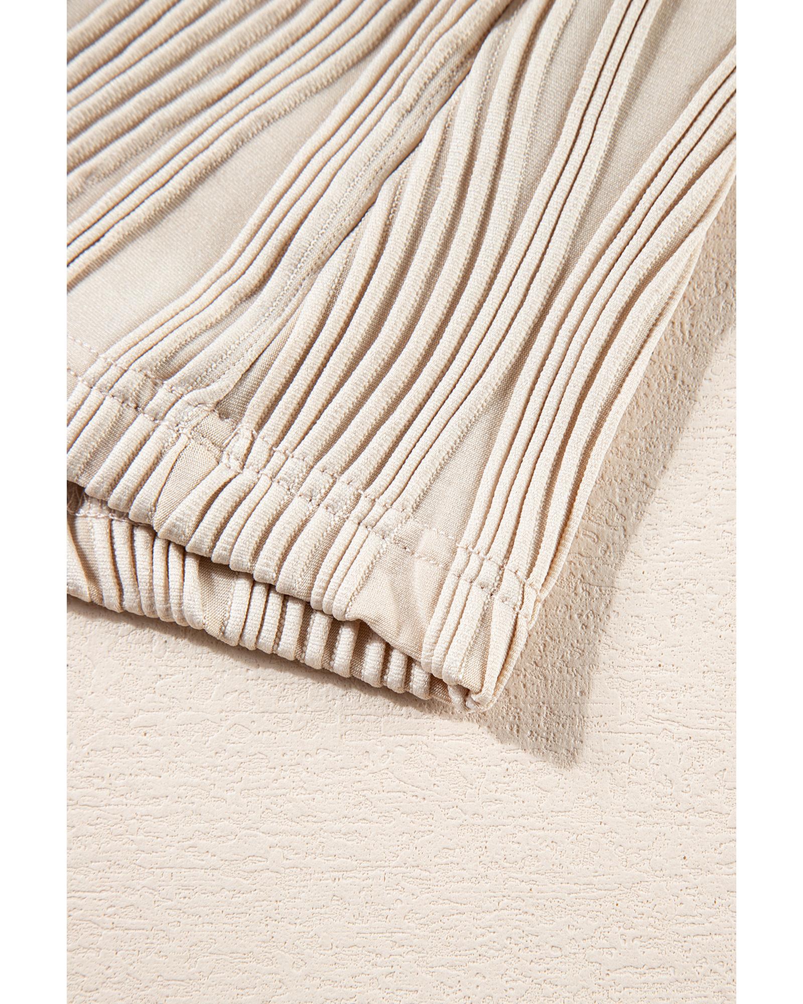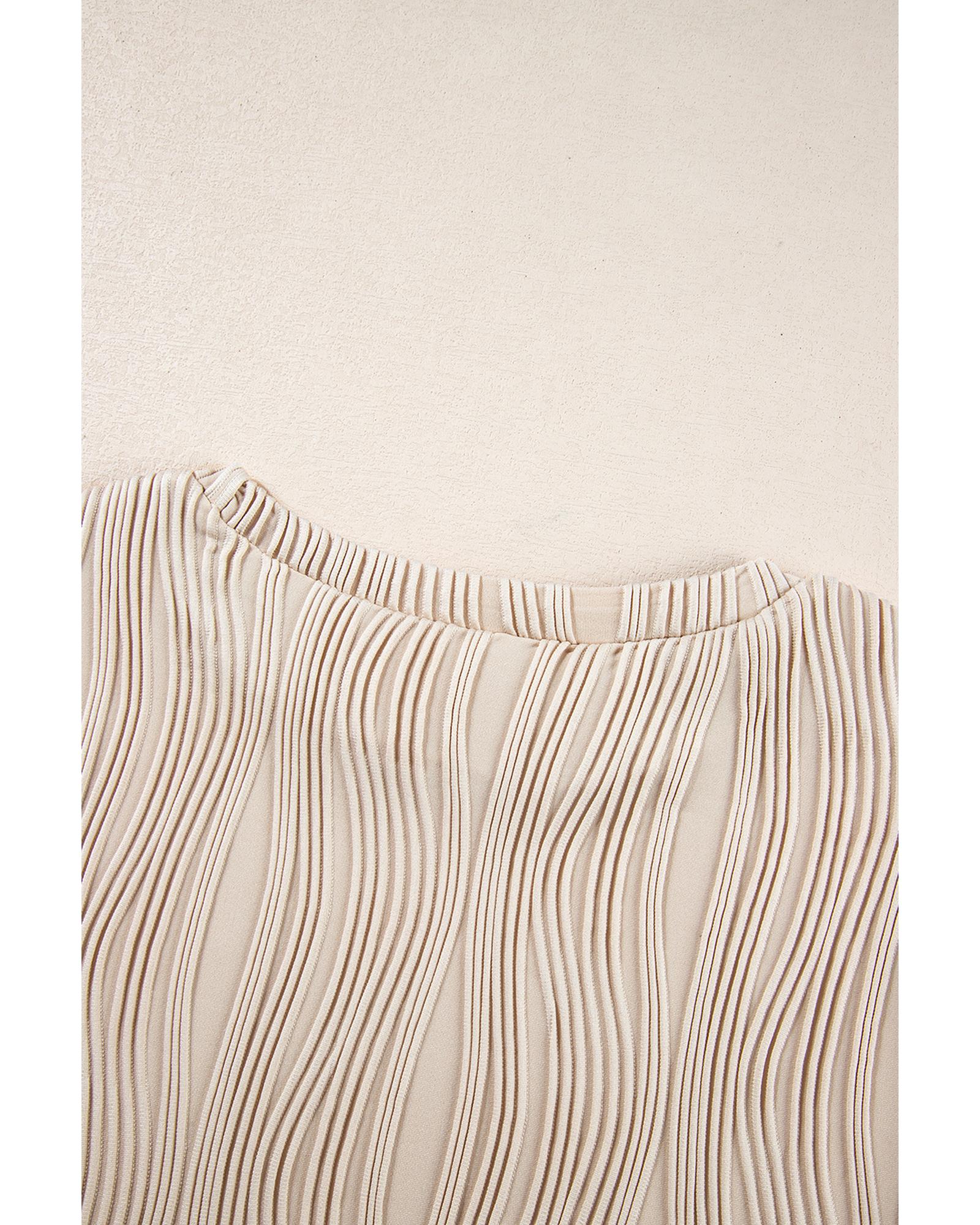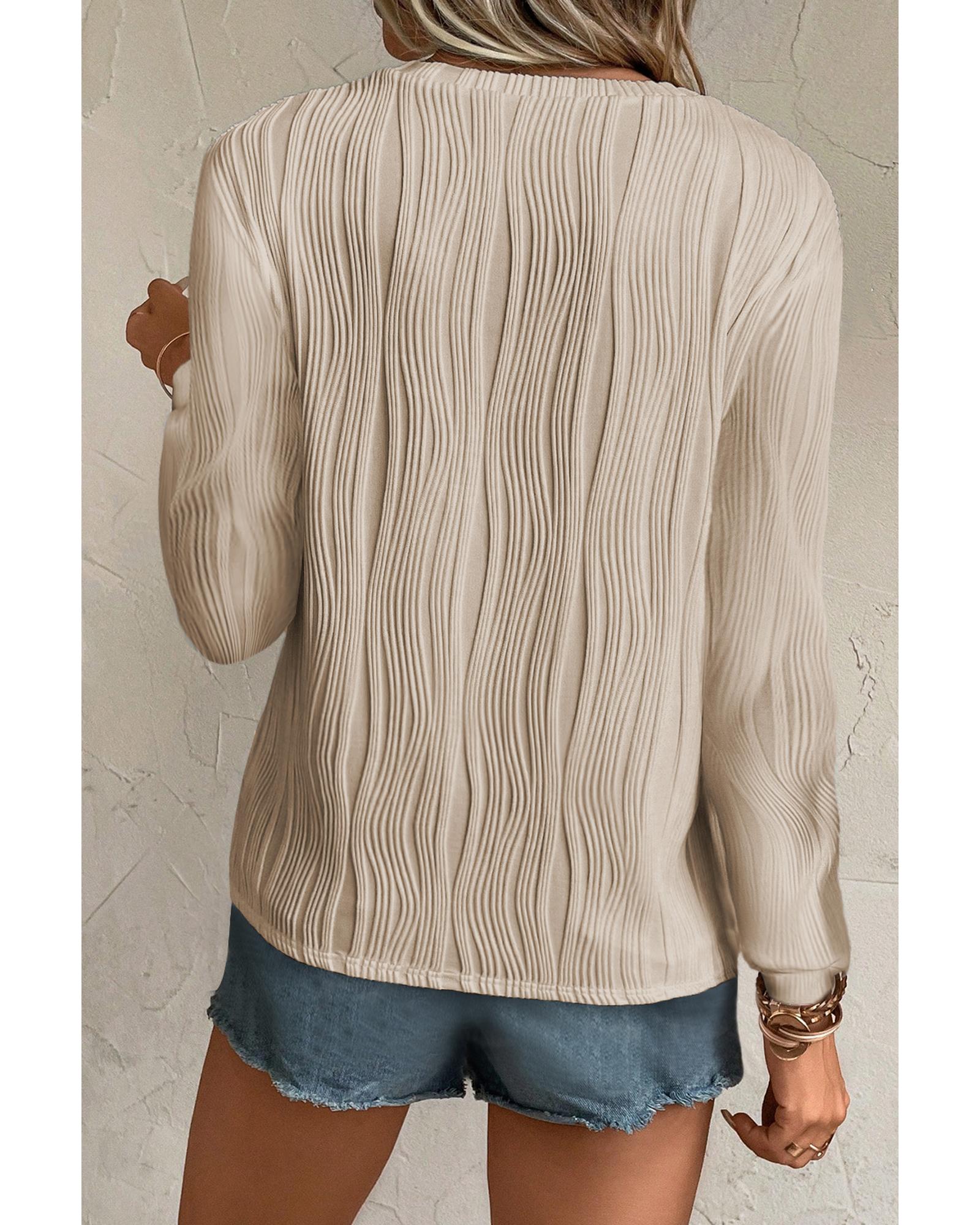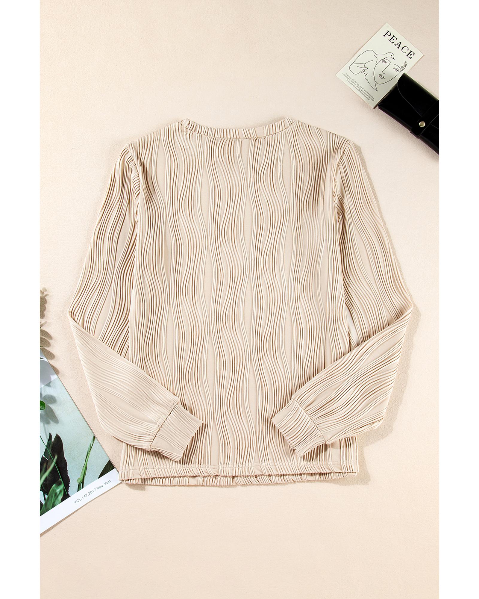 • Apricot Textured Wavy Round Neck Long Sleeve Top