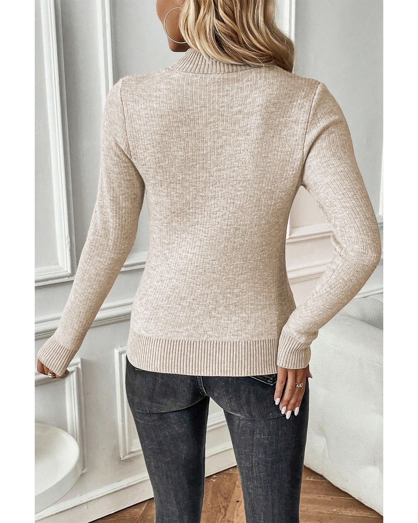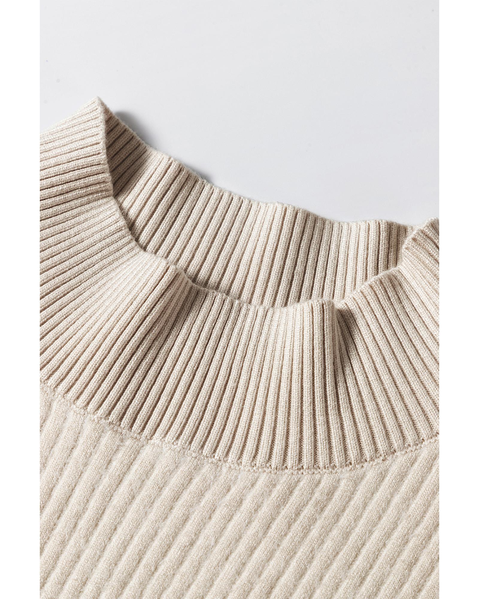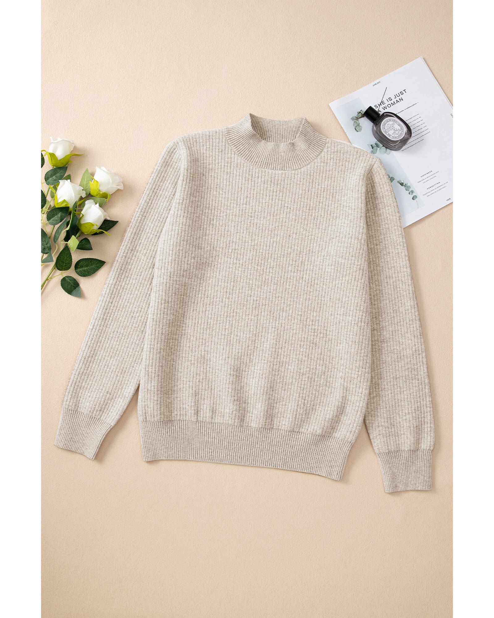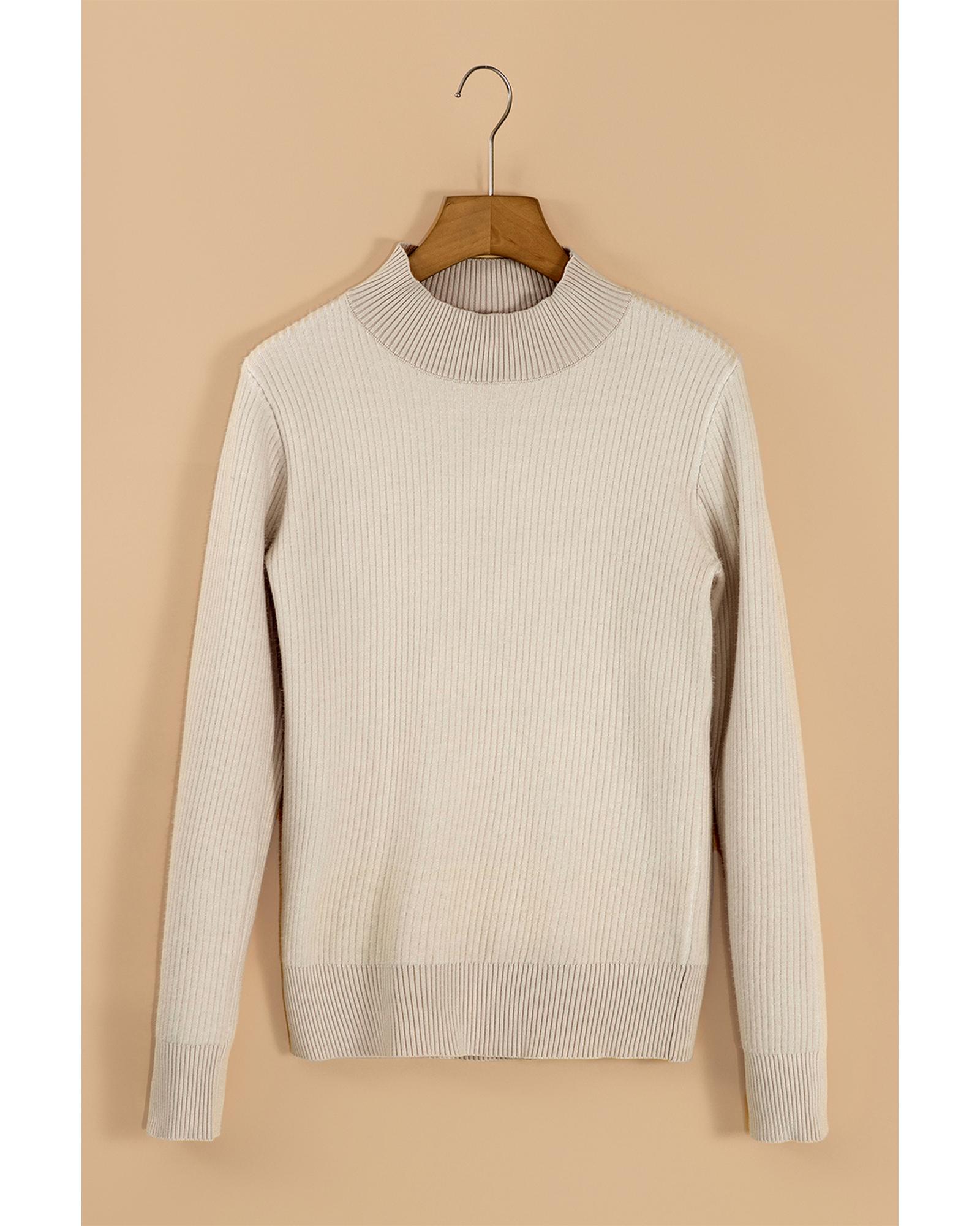 - Apricot Thermal Lined Ribbed Knit Mock Neck Sweater