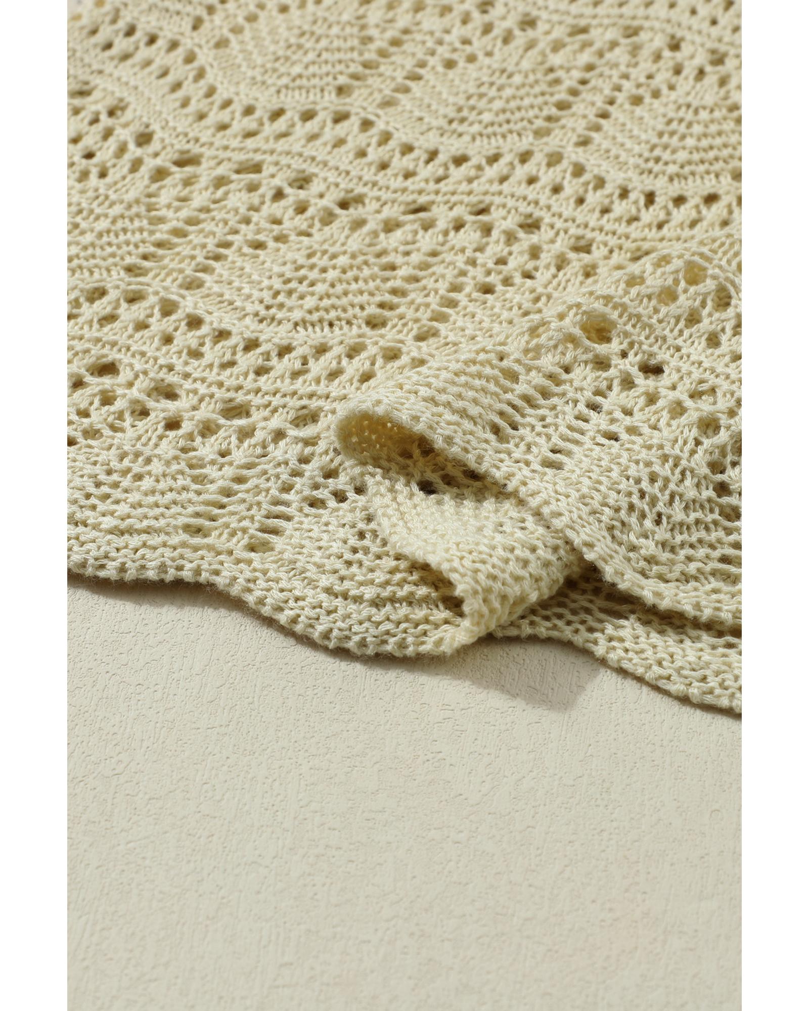 Apricot V Neck Textured Hollow-out Sweater Vest – S