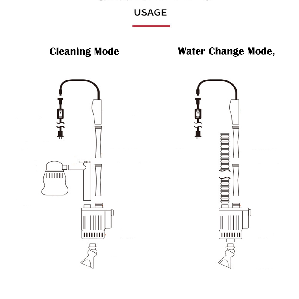 – Convenient to use. Press the on/off button, the water in aquarium will be pumped out automatically through a hose for changing water.