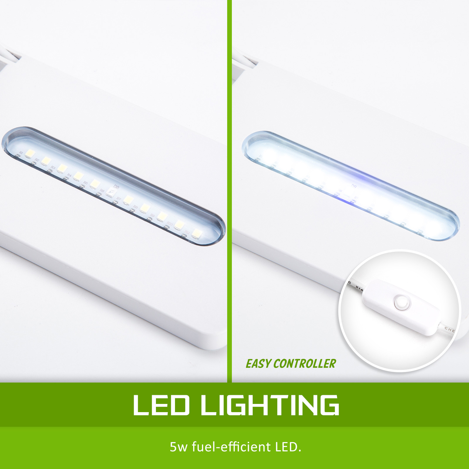 - 5W LED light for the right brightness and environmentally friendly energy consumption
