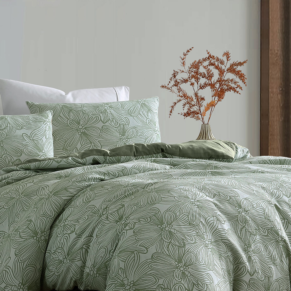 Ardor Avena Green Textured Floral Jacquard Quilt Cover Set King
