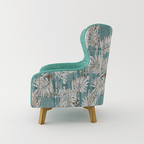 Armchair High back Lounge Accent Chair Designer Printed Fabric with Wooden Leg