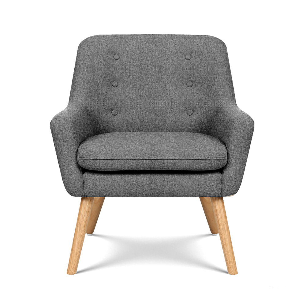 Upholstered in quality polyester, the Anne Armchair is a full size chair with generous seating space. The extra thick foam padding ensures ultimate comfort with exceptional support while the tufted backrest adds an array of luxurious highlights to the overall character of the armchair. Together with a reinforced wooden frame and sturdy tapered rubber wood legs, the Anne Armchair is guaranteed to stand up to durable use for many years to come. Not least, with its neutral tones, the Anne Armchair is a seamless match for any home décor.