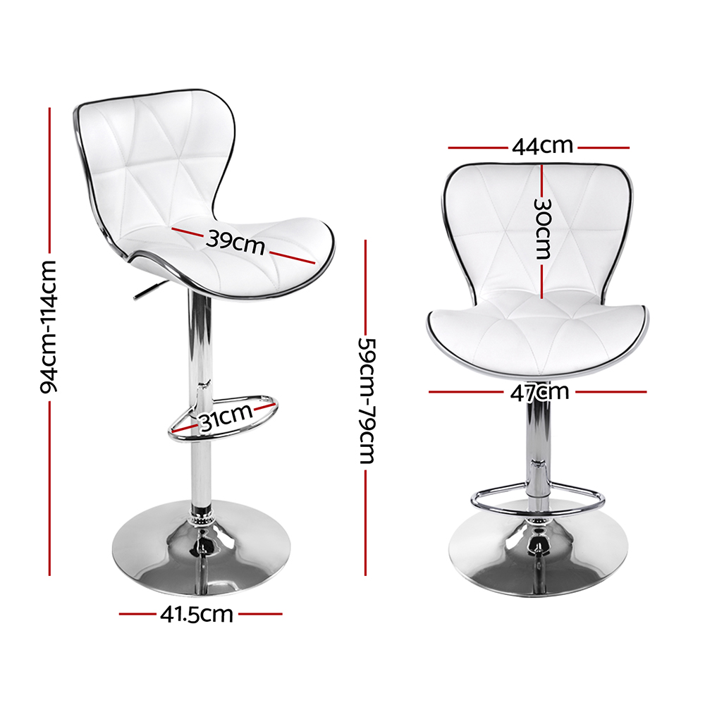 Artiss 2x Bar Stools Gas Lift Leather Seat White