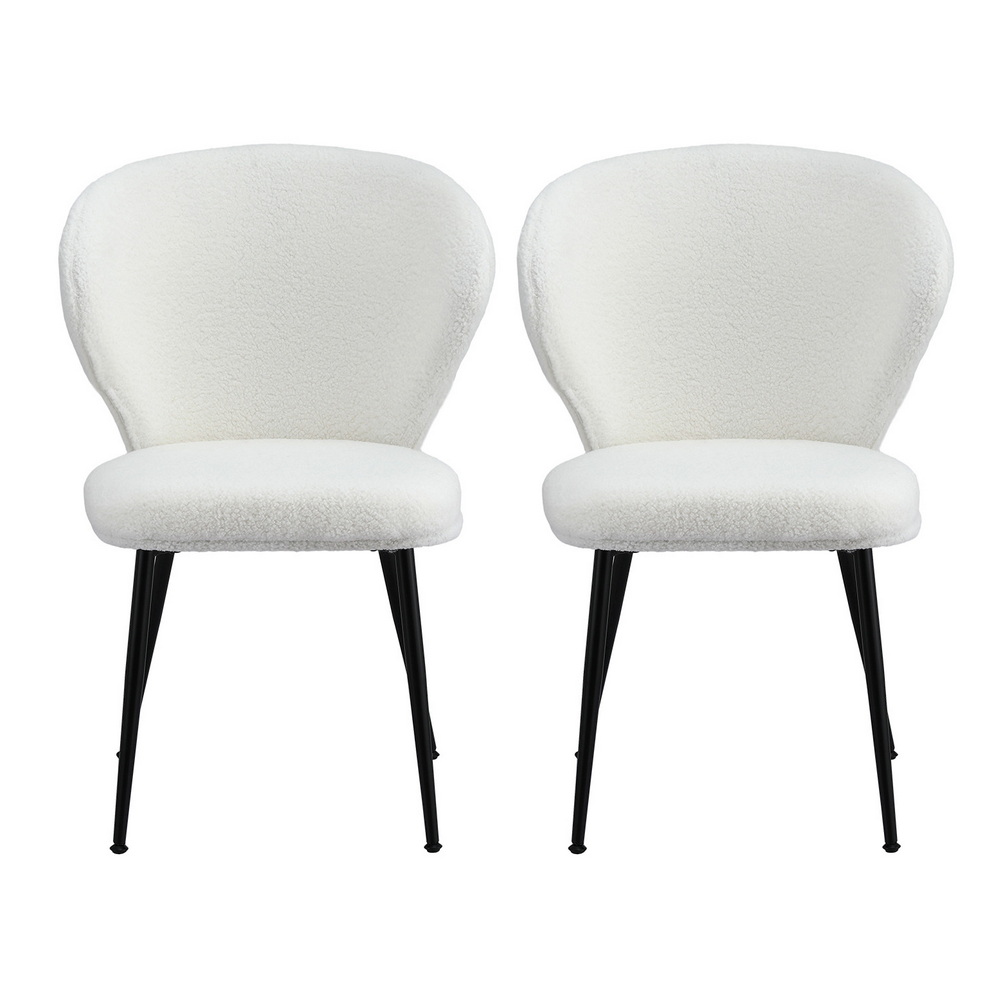 Artiss 2x Dining Chairs Sherpa Boucle Wing Back White
