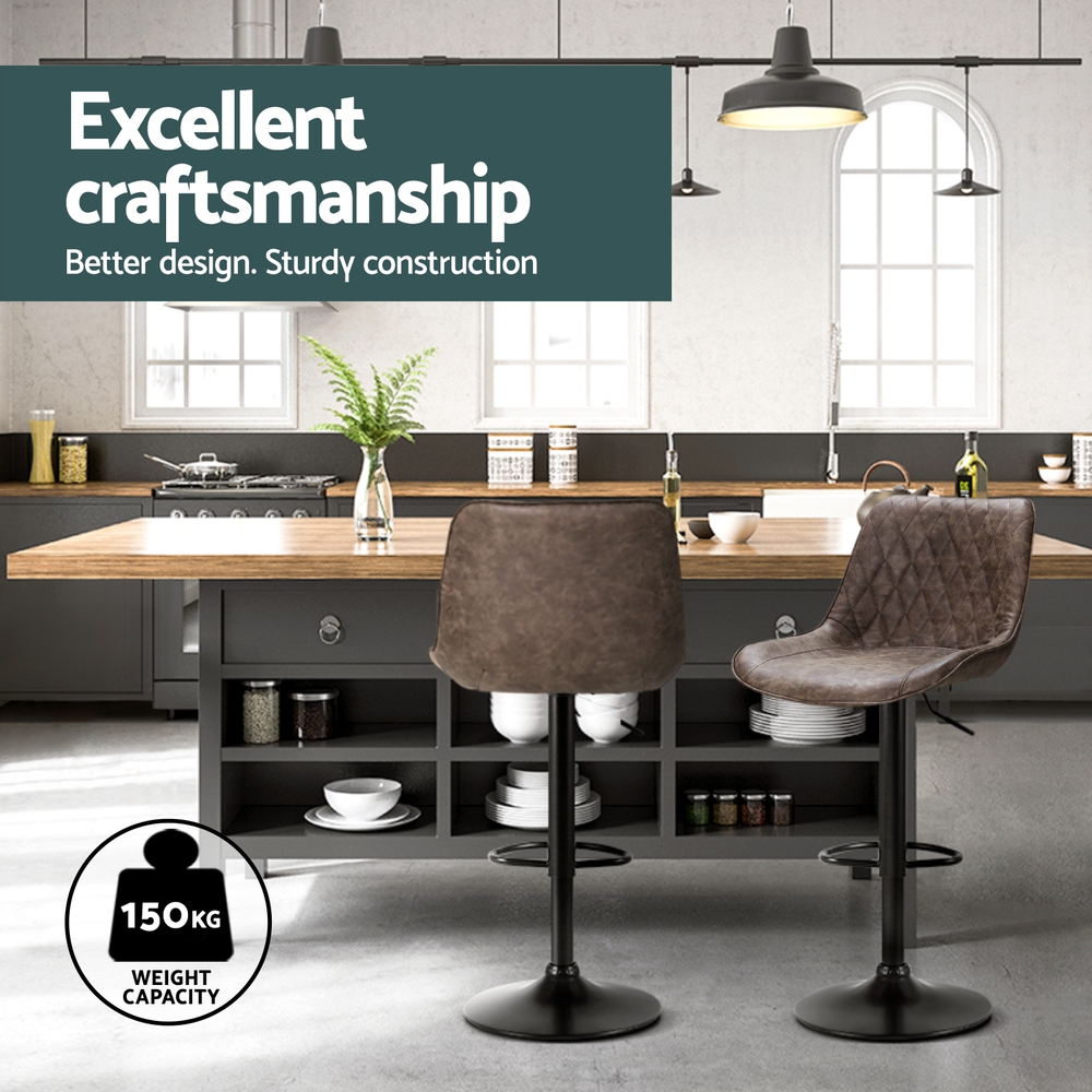 Not an ordinary piece of furniture but stands out in every aspect, whether it’s craftsmanship, style, upholstery, comfort, or quality that speaks for itself. If you’re after achieving an elegant vintage yet contemporary feel in your space, our Artiss’ Rushal bar stools with an elegant back and seat design are just perfect. They’re great for catchups over coffee with friends, a jam session with the band, or daily living. Our bar stools are uniquely designed that will make you want them in your space. You can style our Rushal bar stools anywhere, from living rooms to kitchen and the bar section, they will effortlessly fuse in any décor and lend an elegant vintage feel to your space. These bar stools can even be used as an impromptu seat when you need extra sitting space. Featuring an elegant diamond back design with beautiful PU vintage leather upholstery, our bar stools have thick foam soft padded seats, sturdy powder-coated pedestal base, adjustable height with SGS-tested gas lift, and floor protector for ultimate stability and scratch-free floors. Their solid structure ensures longlasting use and superb durability. They also feature 360 degree rotatable seat so you can face any direction for ease of conversing with guests and family. Our Rushal bar stools make a timeless piece of furniture, and with two colour options, you can choose that best complements your space and suits your taste. Artiss’ Rushal bar stools would make a gorgeous addition to your space. Shop them today!