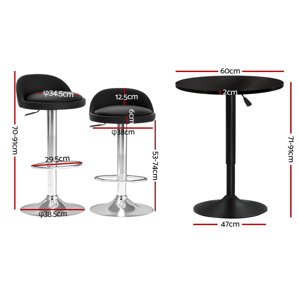 Upgrade your space with the Artiss bar table and stools set, blending contemporary style with functionality. The stools feature a 360-degree swivel and height-adjustable SGS-certified gas lift for personalized comfort, while the sturdy base and floor protectors ensure stability and surface care. Easy-to-clean surfaces and accessible gas lifts make maintenance a breeze. Perfect for both indoor and outdoor settings, this versatile set is ideal for residential or commercial use, offering durability and modern design in one sleek package.