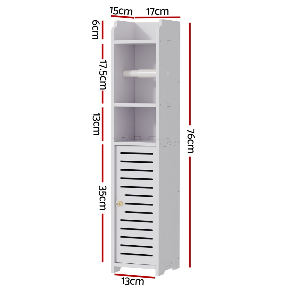 Discover our practical and functional bathroom storage cabinet. The slim cabinet has a space-saving design, meaning it only uses up a tiny bit of floor space and can get into nooks. Made from water-resistant PVC, it features a roll rod for easy access and a bottom cabinet for extra rolls of toilet paper. Simple to assemble and easy to clean, it’s an ideal solution for optimizing your bathroom storage.