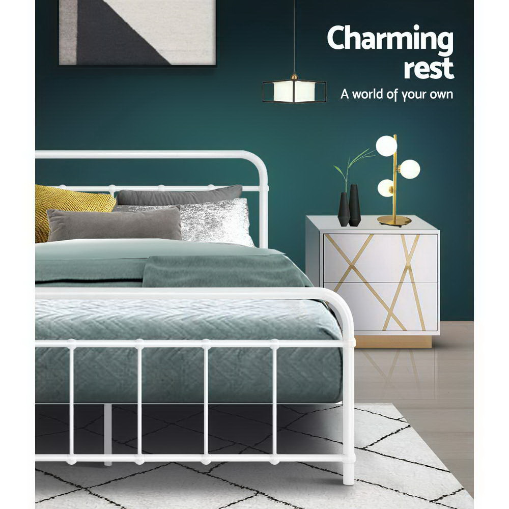 Artiss Bed Frame Metal Bed Frame LEO – Double (White)