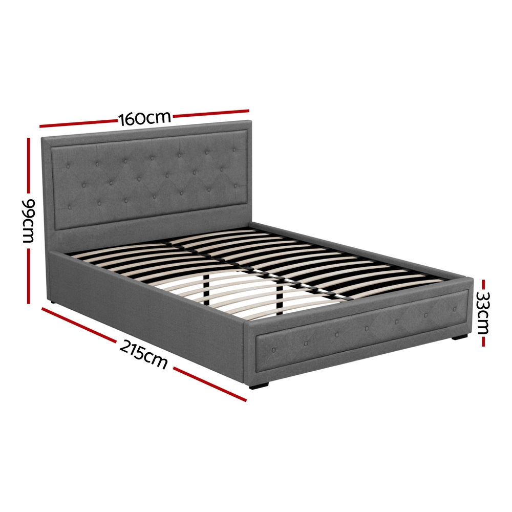 Artiss Bed Frame Queen Size Gas Lift Grey TIYO