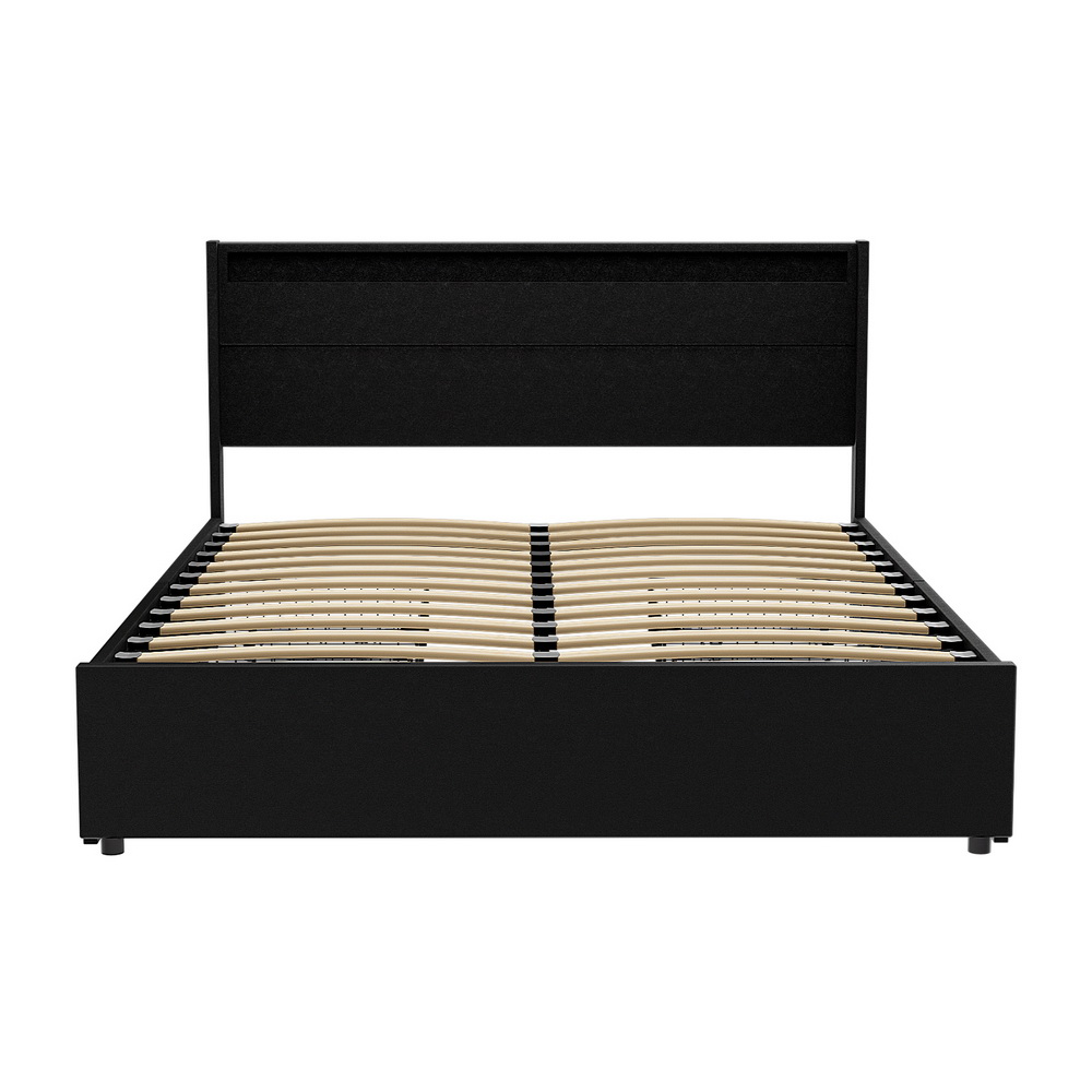 Artiss Bed Frame Queen Size LED with 4 Drawers Black DUNN