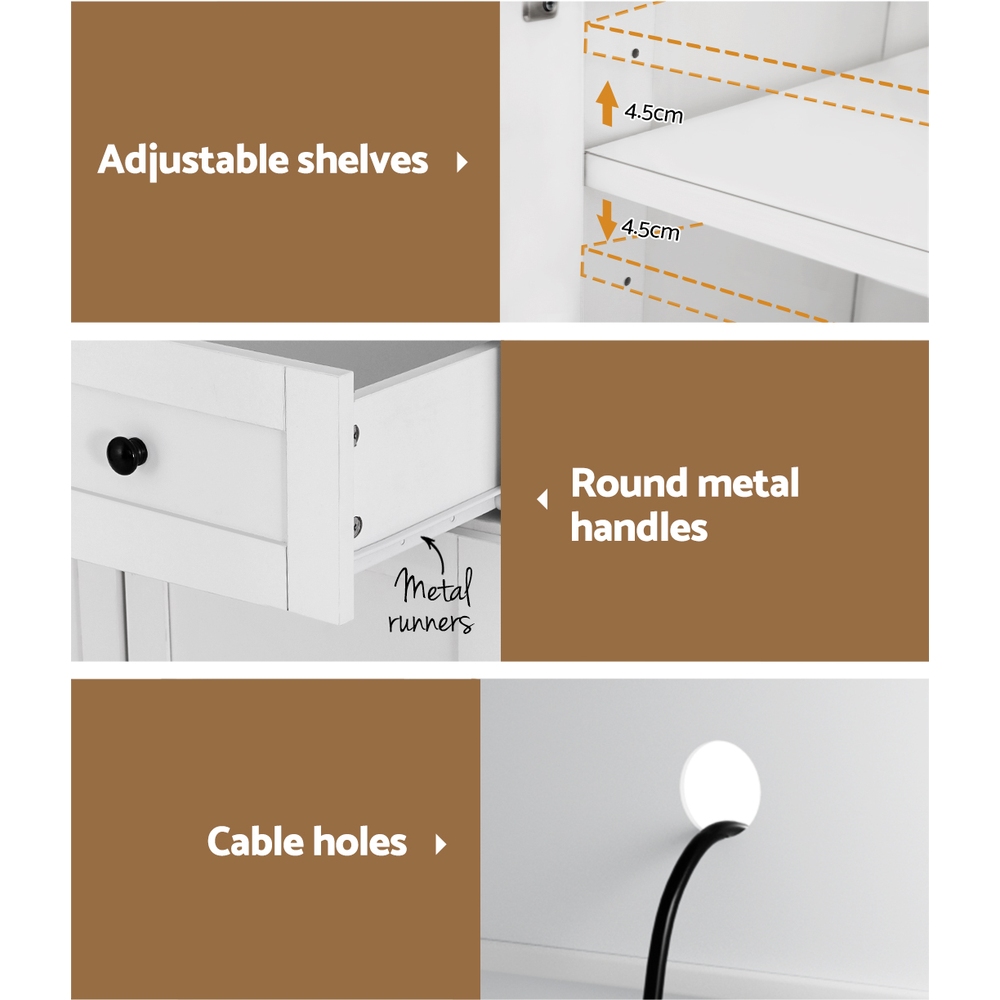 Artiss Buffet Sideboard Cabinet Cupboard Pantry Storage Shelves Hutch White