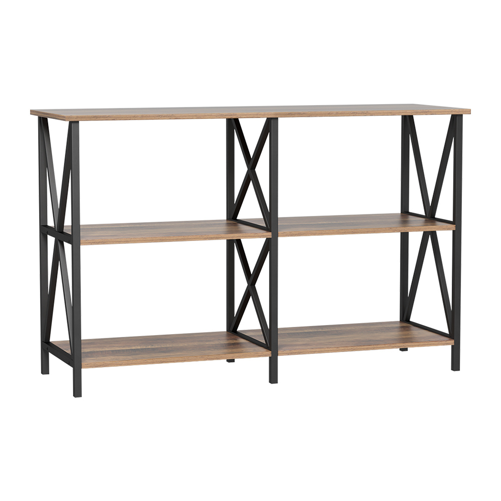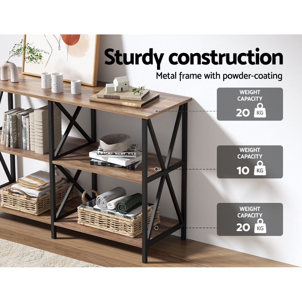 Looking for extra storage space in your living room or hallway? The industrial-style Xiah Console Table is the ideal entry piece to welcome visitors, hold décor, and complete the look of your living room. Crafted from 15mm thick, sturdy particle board and anti-rust powder-coated black steel, the table is durable and designed to stand the test of time. The X-brace side and centre support keep the table balanced and strong, giving the shelves a 50kg total weight capacity. 3 tiers and six generous shelves give you plenty of room to store collectables, memorabilia, family portraits, or anything you see fit. Anti-slip feet keep the shelves in place so you never have to worry about slipping or scratching your floors, and the whole piece is simple to assemble and maintain so you can get to organizing right away. Get creative with your decor and enjoy the simple things with your new Xiah Console Table.