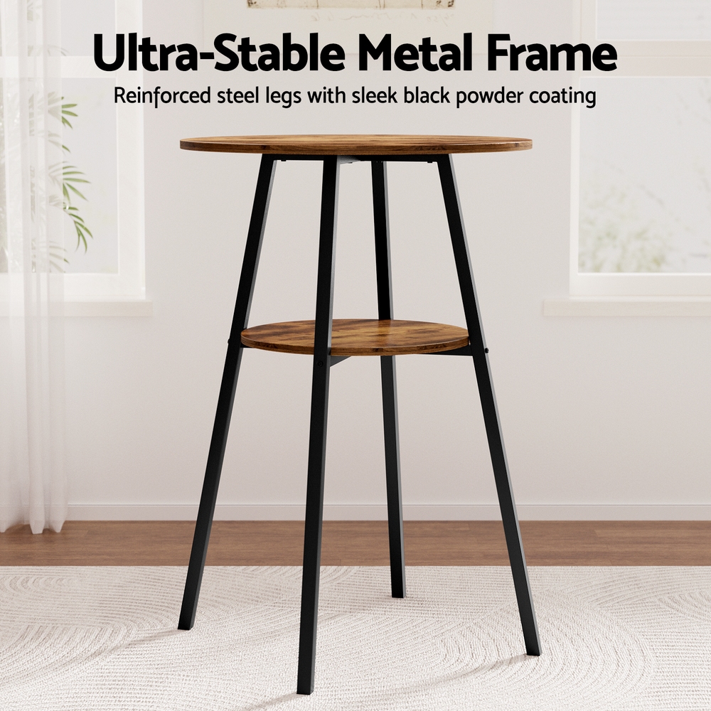 Artiss Industrial Bar Table with 2-Tier Organizer Weather-Resistant MDF Top Steel Frame