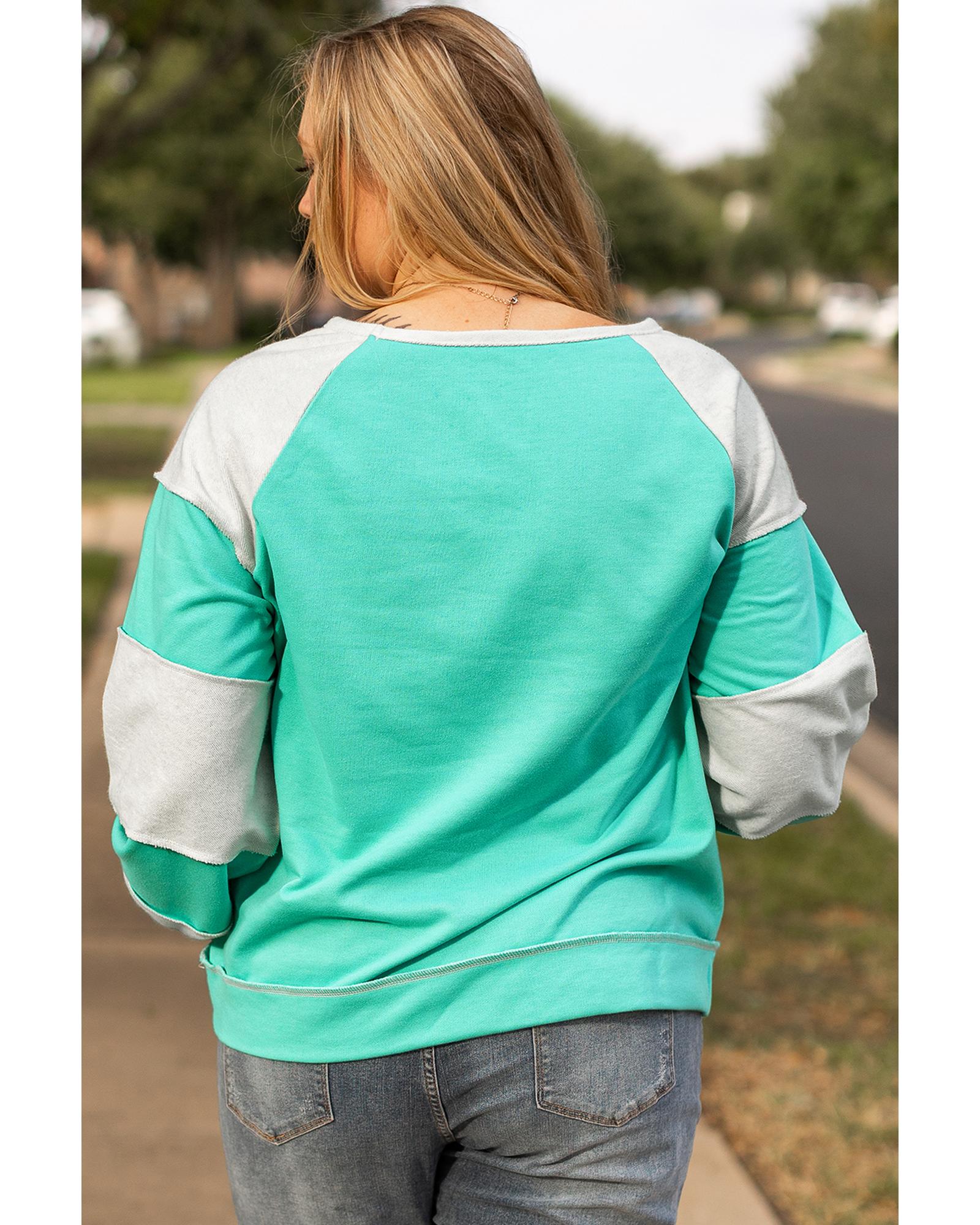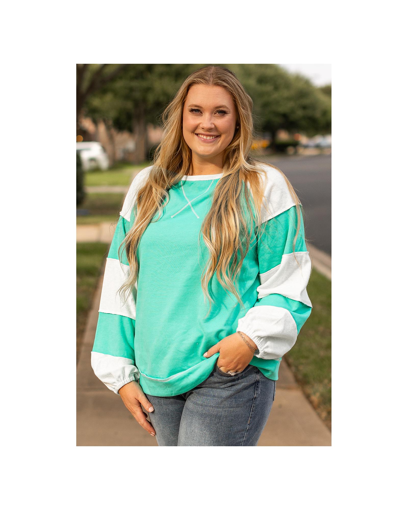 Aruba Blue Colorblock Patchwork Cross Seam Plus Sweatshirt – 3X