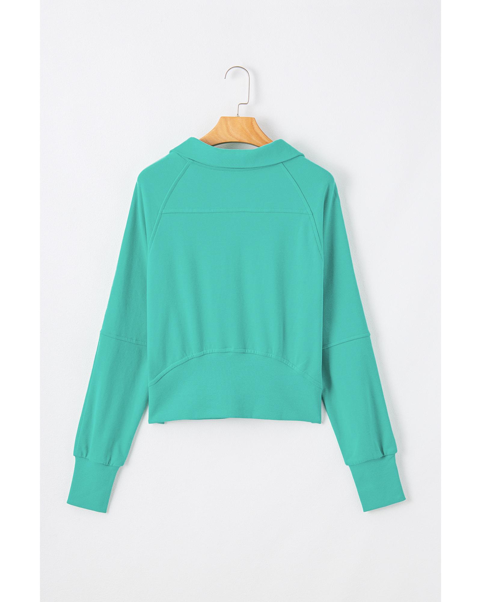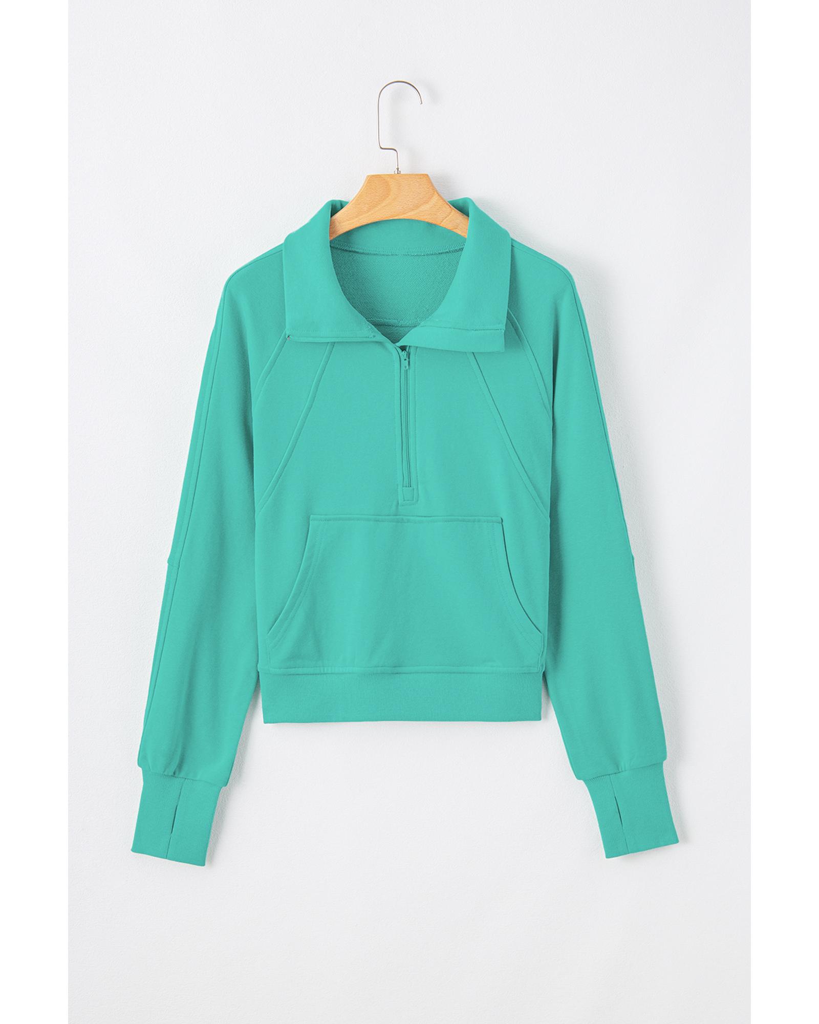 - Aruba Blue Quarter Zip Stand Neck Kangaroo Pocket Sweatshirt