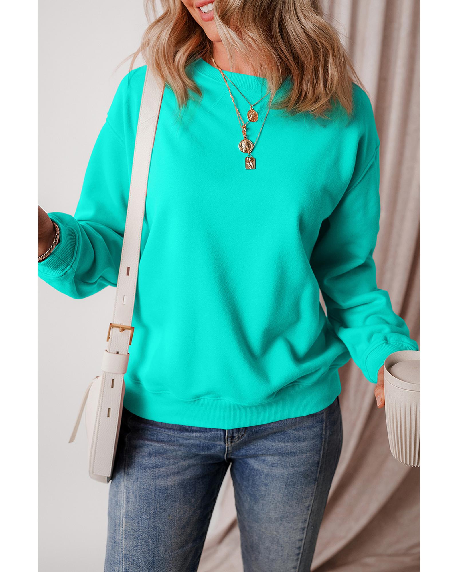 Aruba Blue Solid Fleece Lined Drop Shoulder Terry Sweatshirt – S