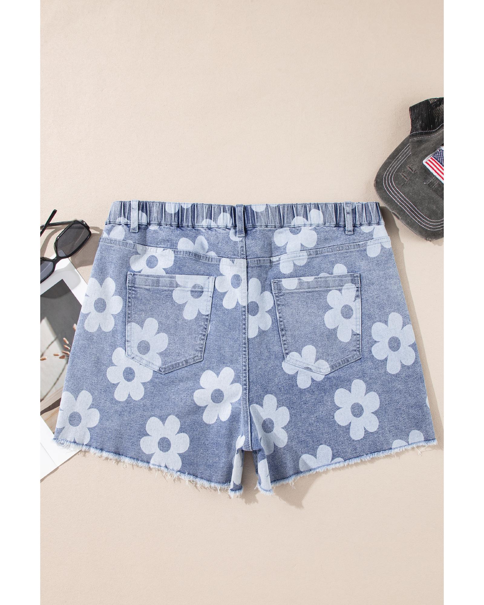 Ashleigh Blue Floral Pattern High Waist Raw Hem Plus Size Denim Shorts – 2X