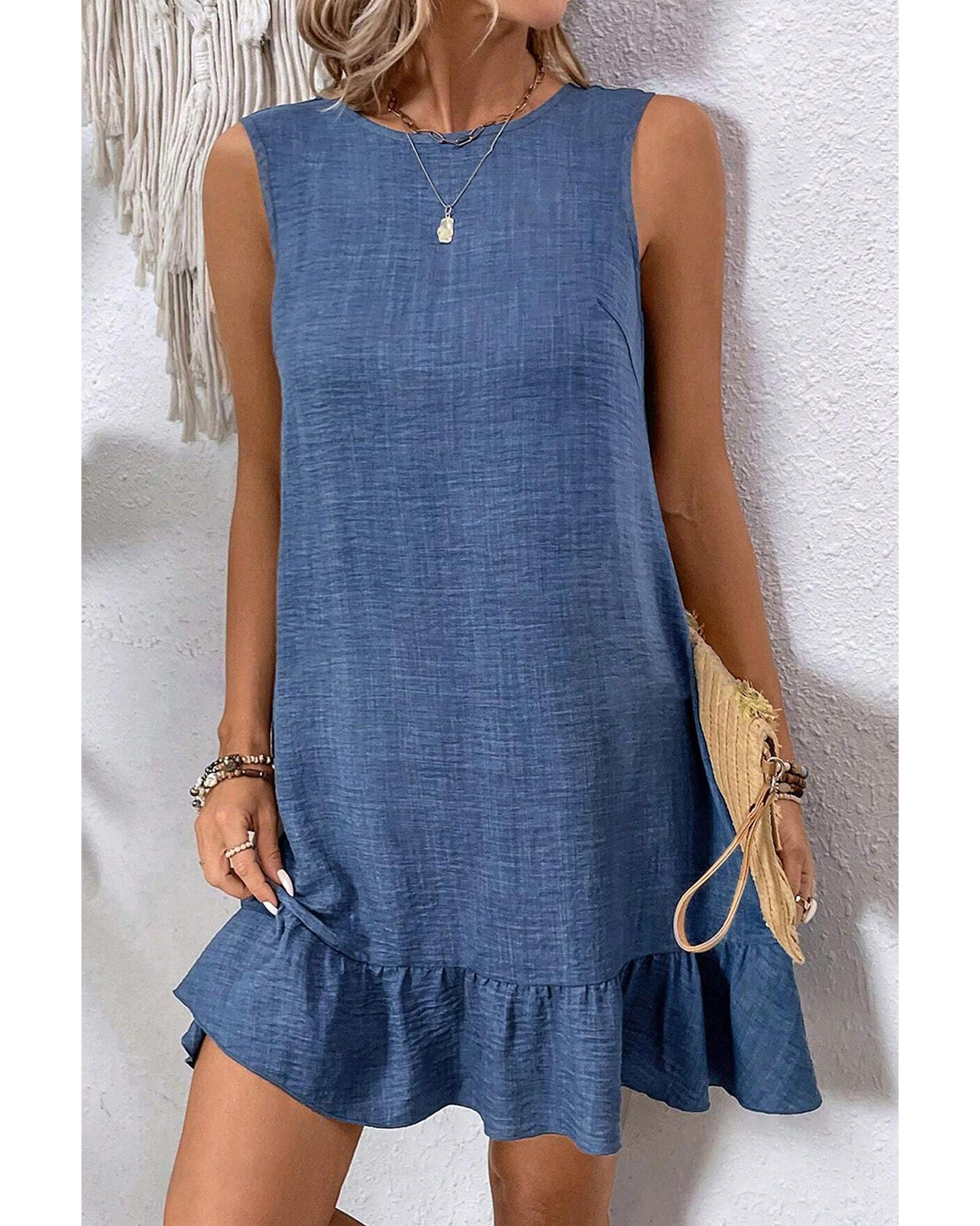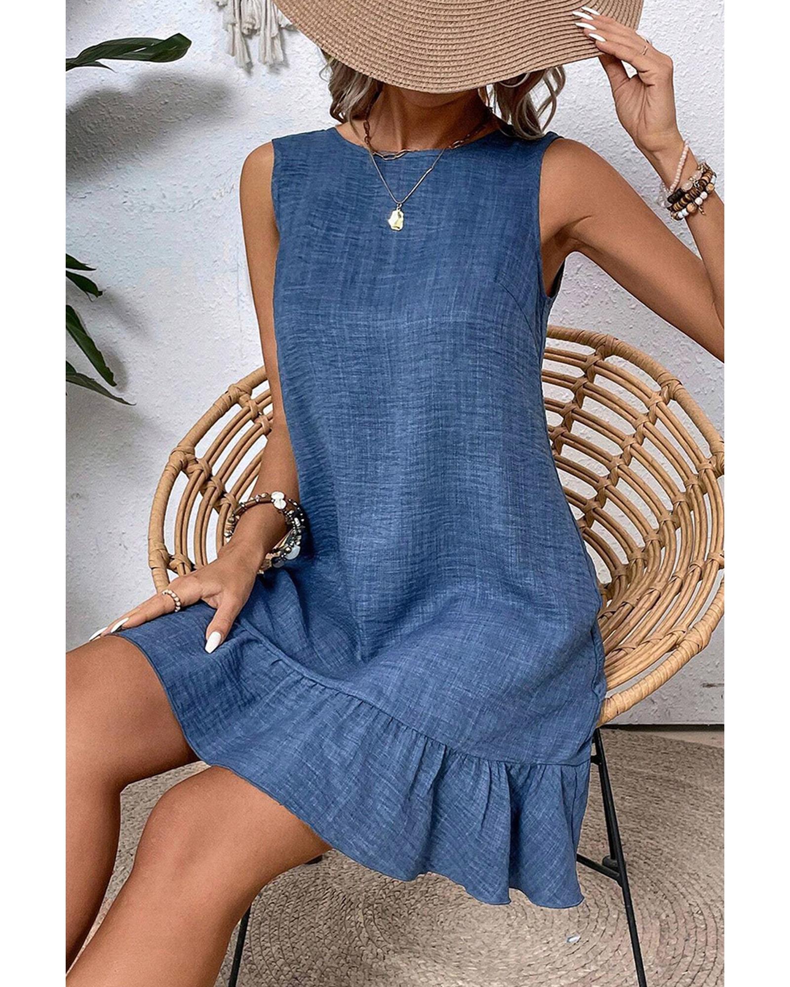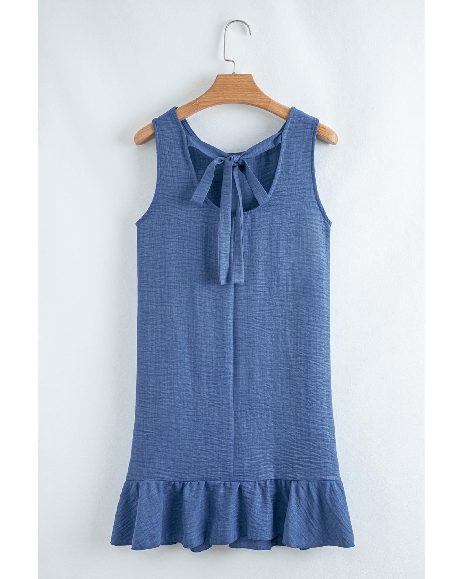Ashleigh Blue Knot Scoop Back Ruffle Hem Sleeveless Mini Dress – XL