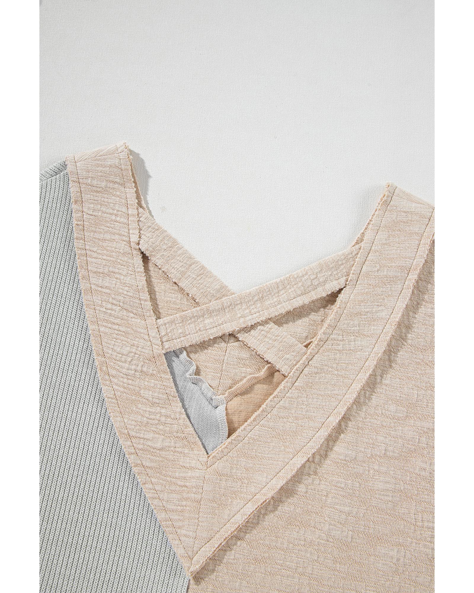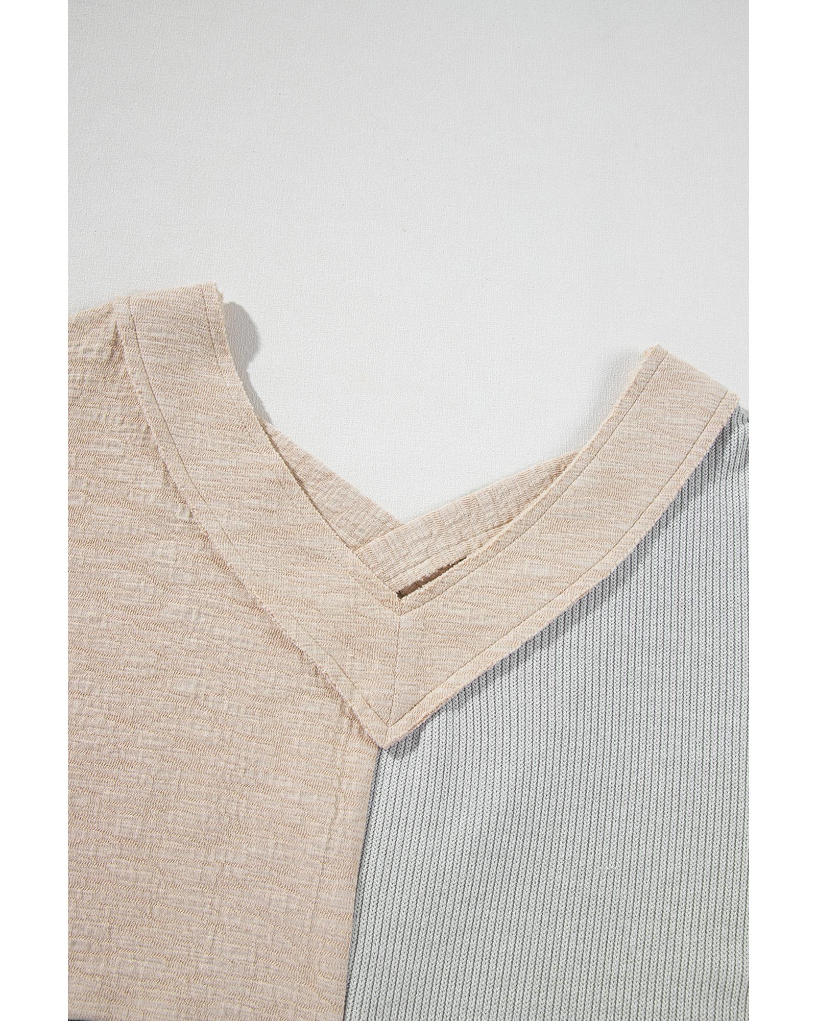 Ashleigh Blue Plus Size Textured Colorblock Patchwork V Neck Top – 3X