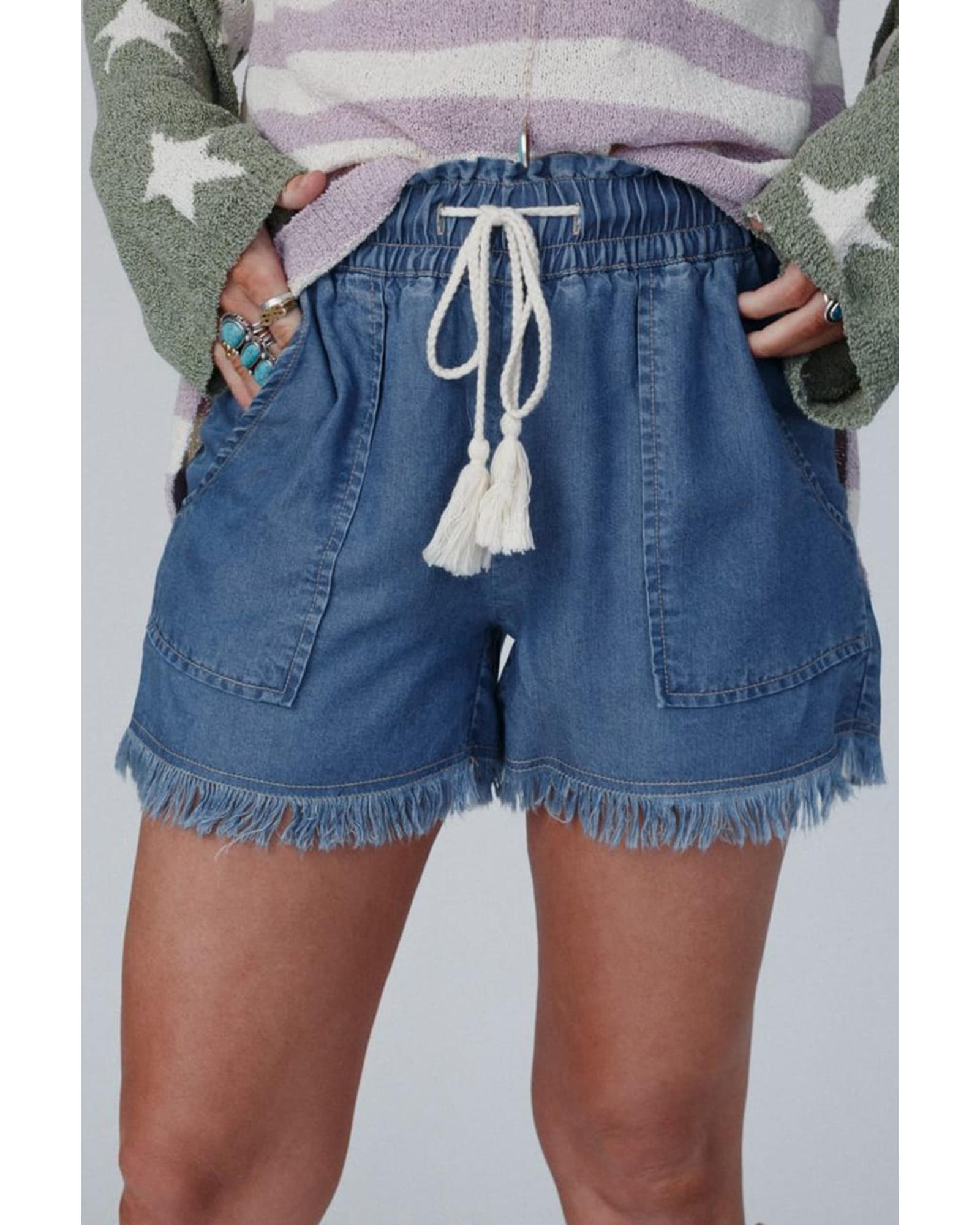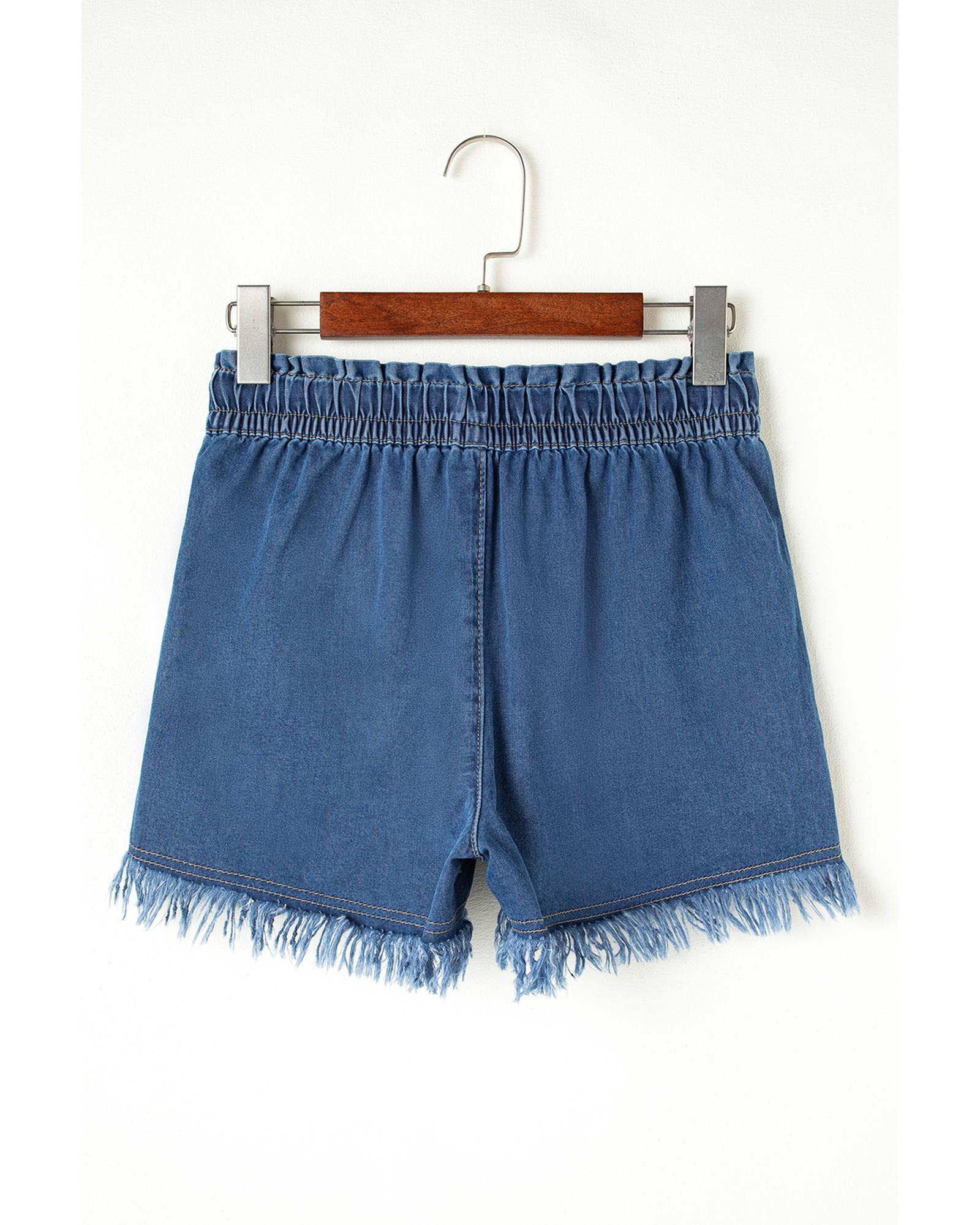 Ashleigh Blue Raw Hem Drawstring High Waist Denim Shorts with Pockets – 8 US