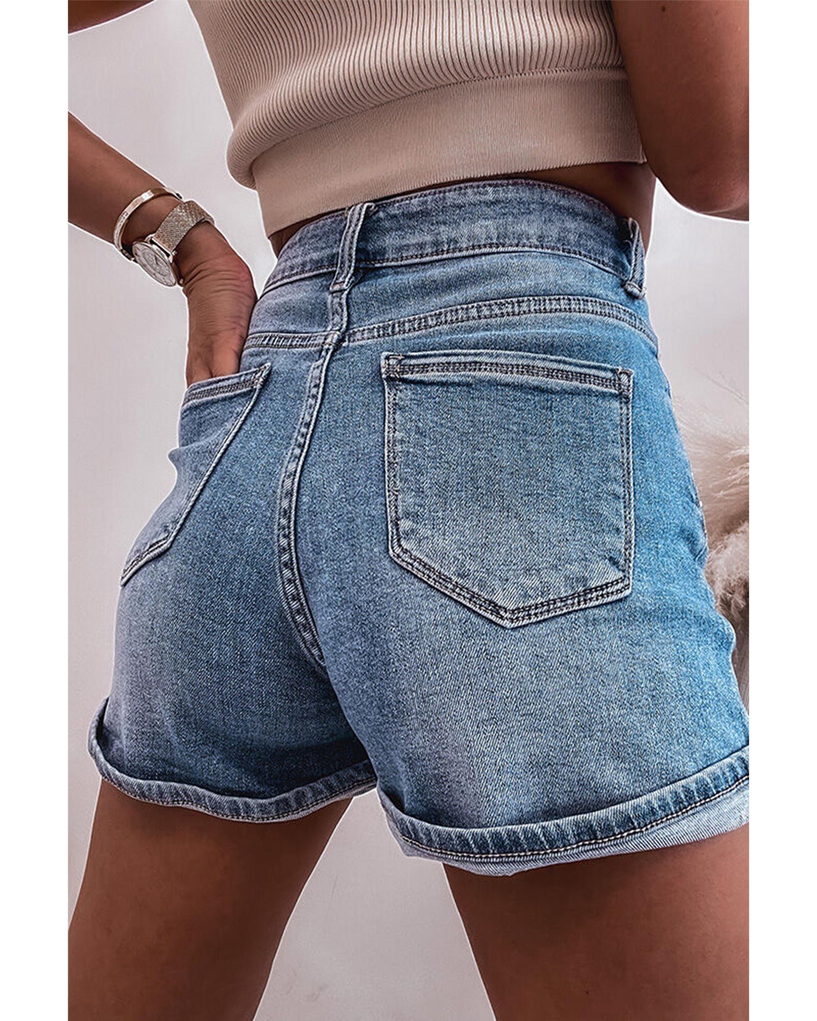 Ashleigh Blue Rhinestone Embellished Denim Shorts – 16 US