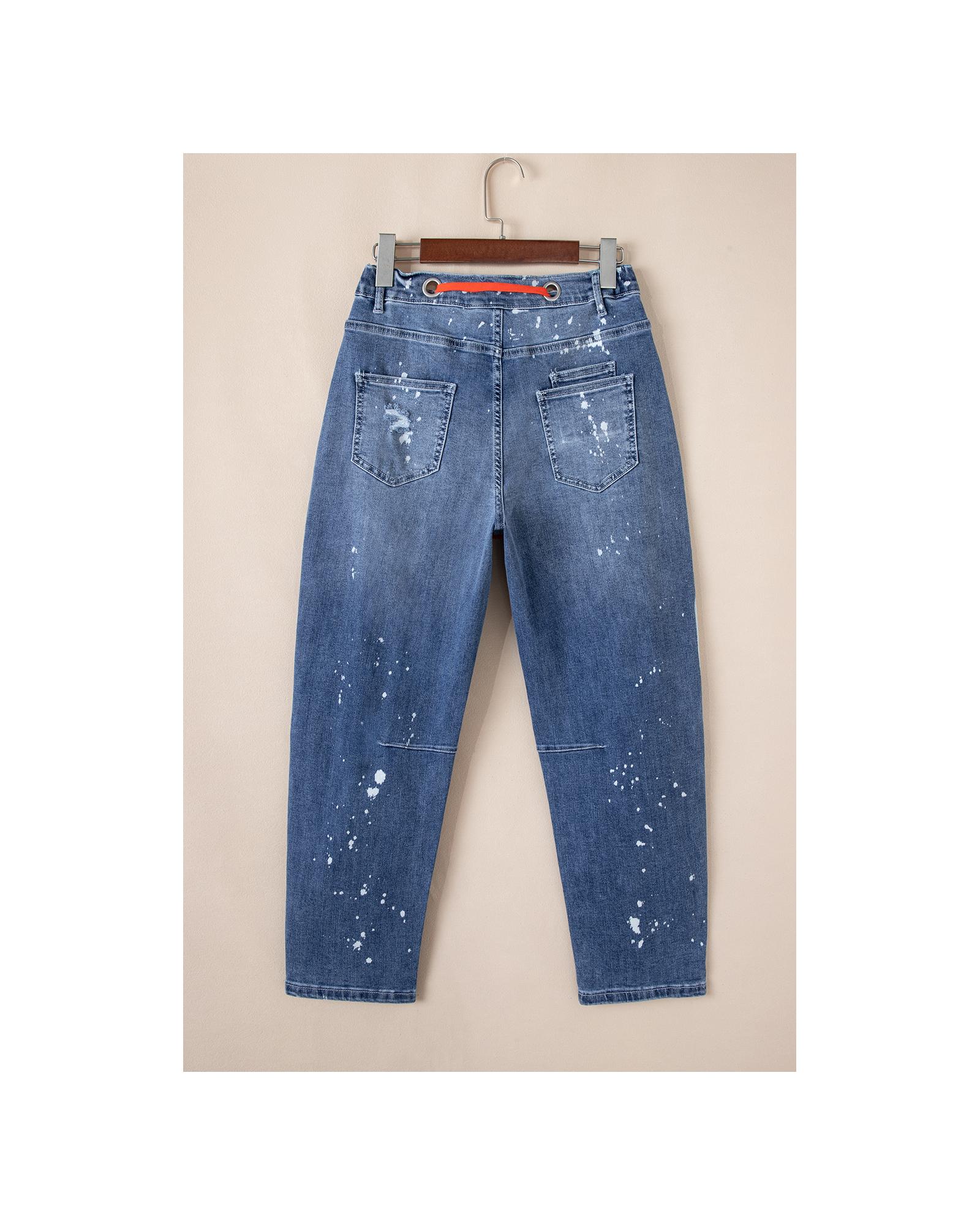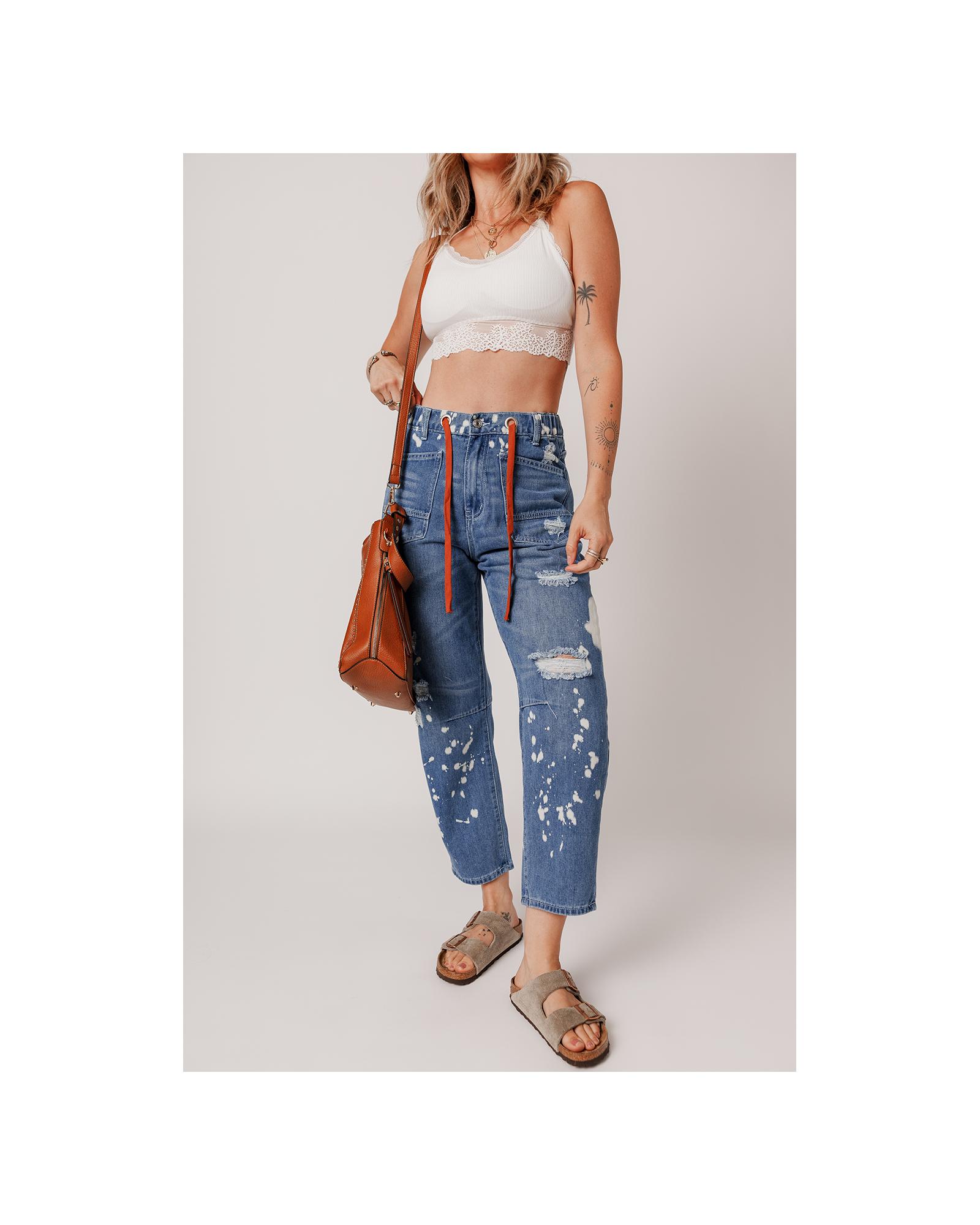 Ashleigh Blue Ripped Splattering Paint Rope Waist Cropped Straight Jeans – 10 US
