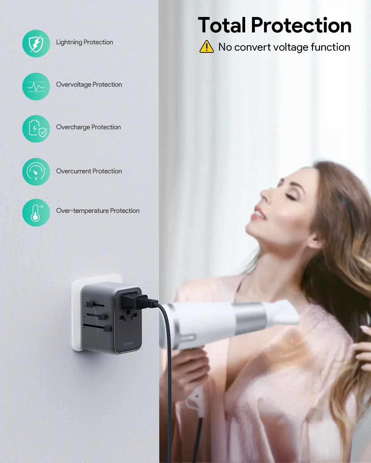 Aukey Travel Mate 35W GaN Universal Adapter with USB ports (PA-TA07A)