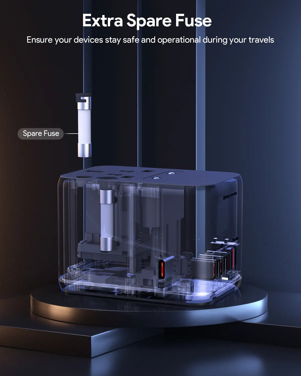 The Aukey Travel Mate Universal Adapter with 4 USB-CÂ Ports 65W (PA-TA08A) is a versatile travel accessory that provides reliable charging in over 150 countries. With both USB-A and USB-C ports, it allows you to charge multiple devices simultaneously, including laptops, smartphones, and tablets. The 65W power output ensures fast and efficient charging, making it ideal for high-powered devices. Its compact design makes it easy to carry while traveling, and built-in safety features protect against overheating, overcurrent, and short circuits, ensuring safe and worry-free use.