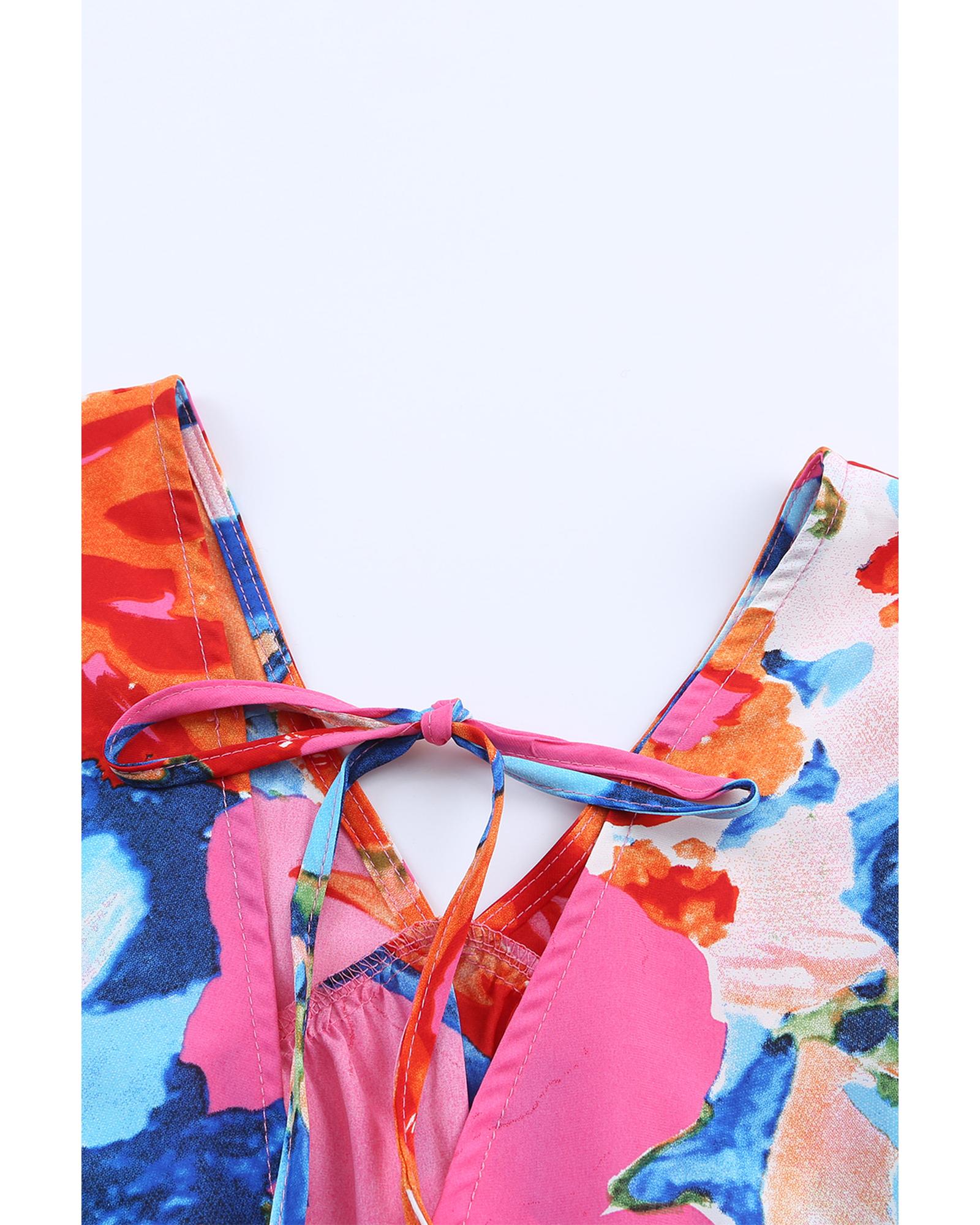 Azura Exchange Abstract Print V Neck Flutter Sleeve Blouse – S