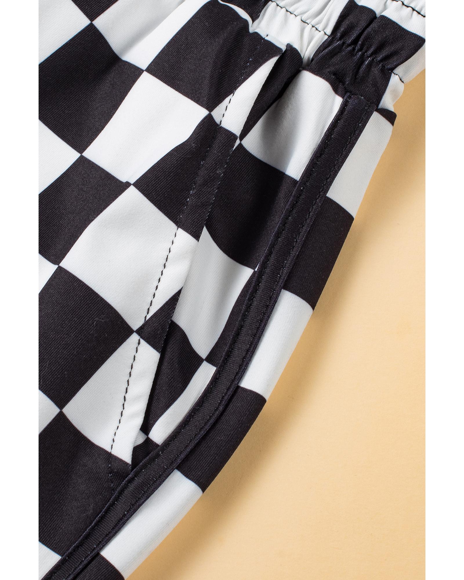 Azura Exchange Black Checkered Drawstring Elastic Waist Casual Shorts – S