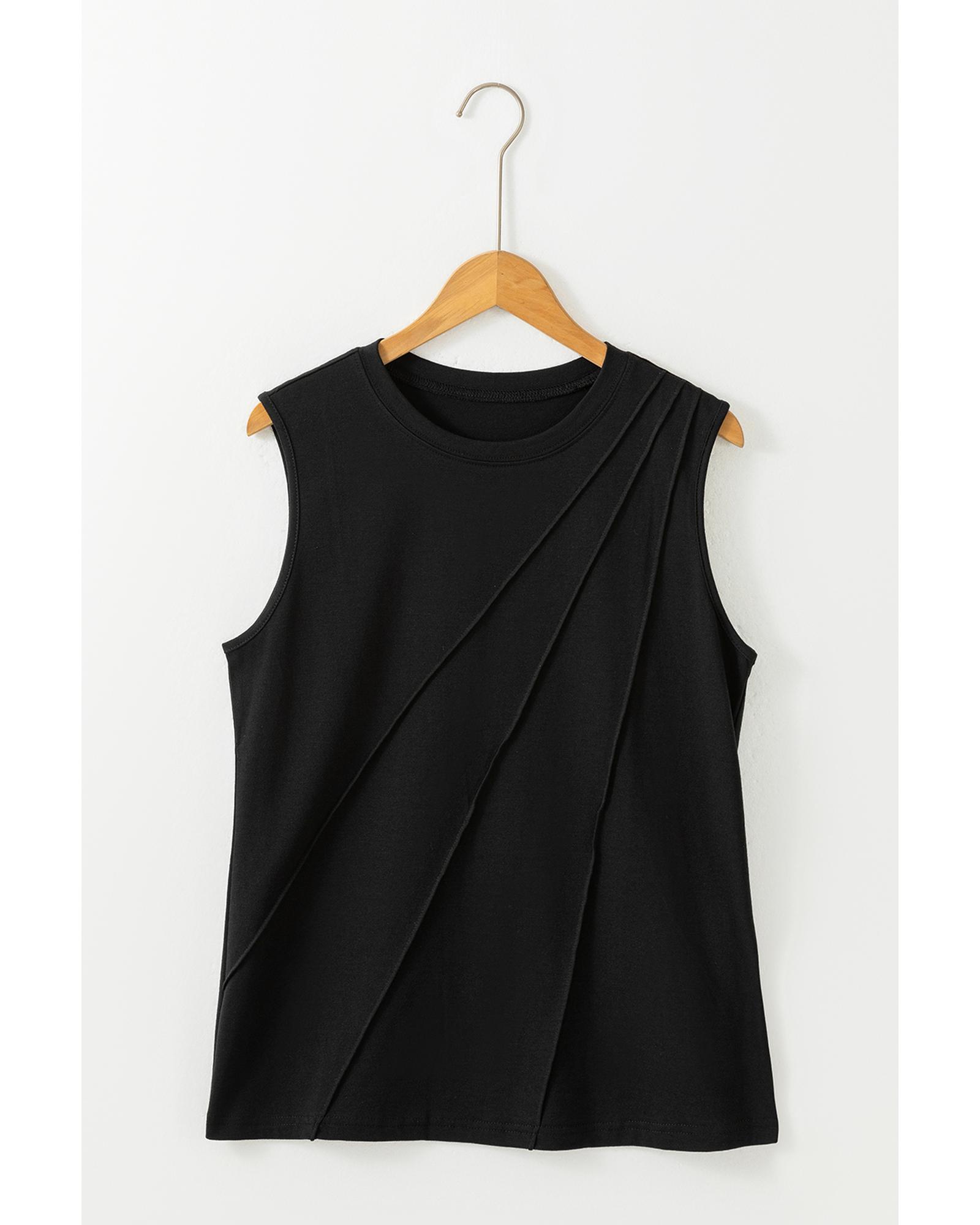 Azura Exchange Black Crew Neck Pleated Tank Top – S
