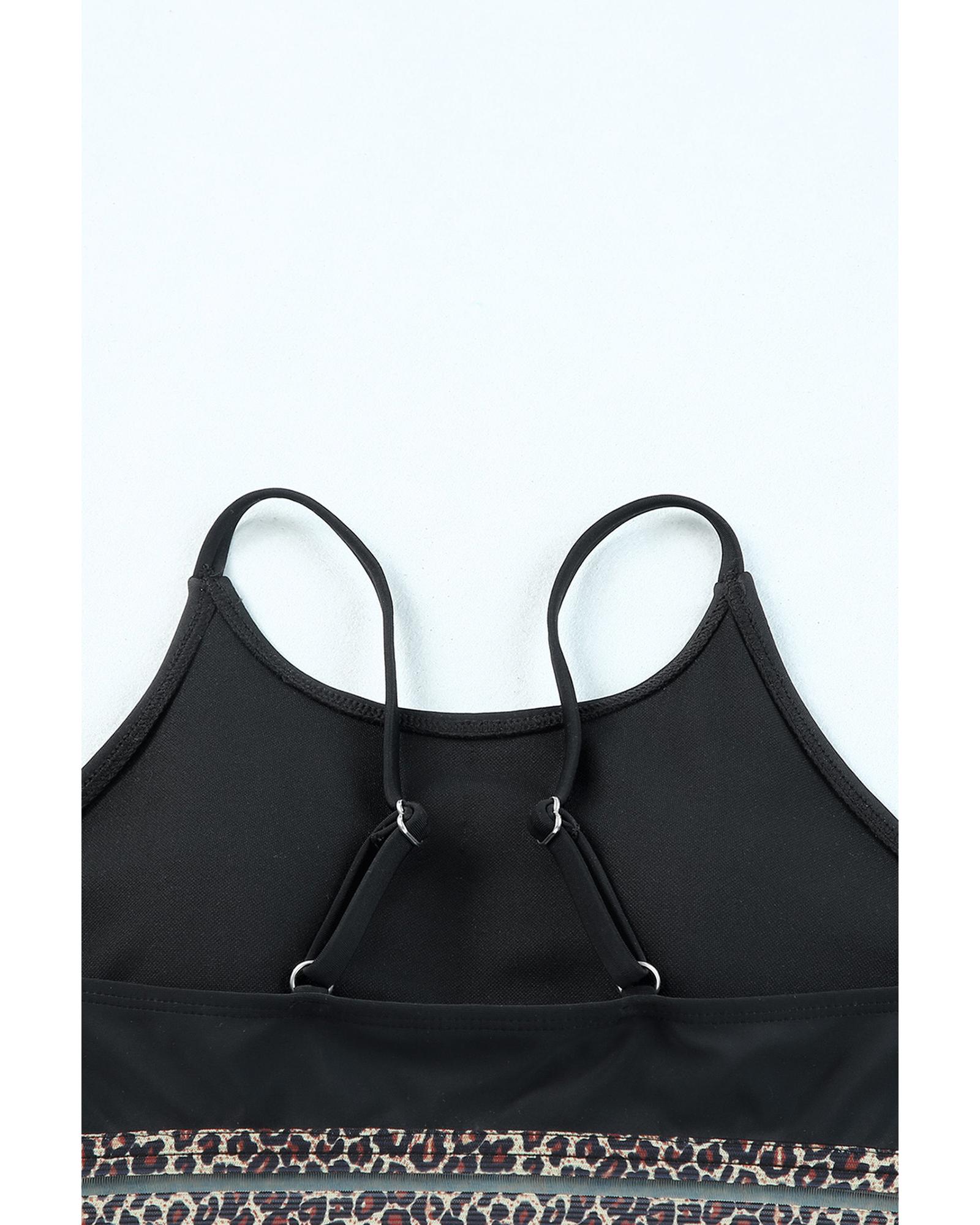 Azura Exchange Black Rose Leopard Mesh Trim 2pcs Bikini Swimsuit – M