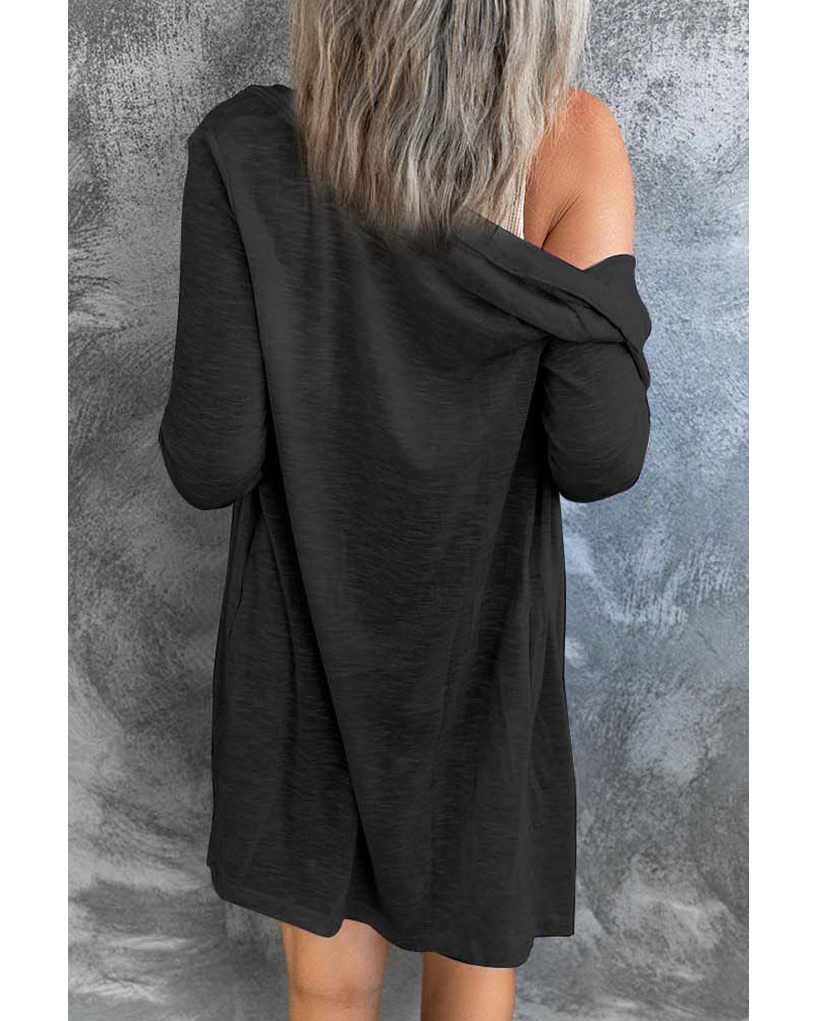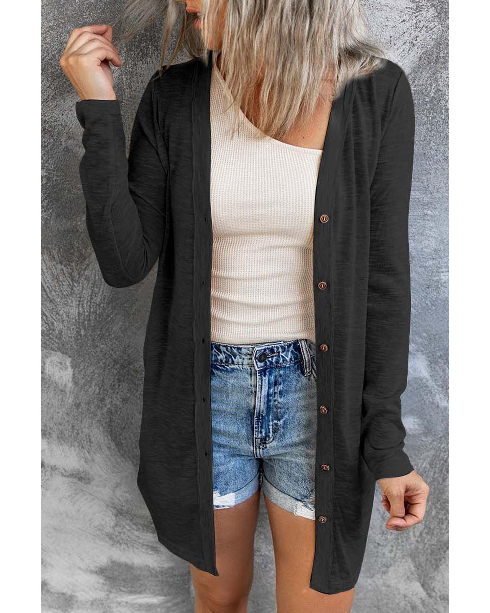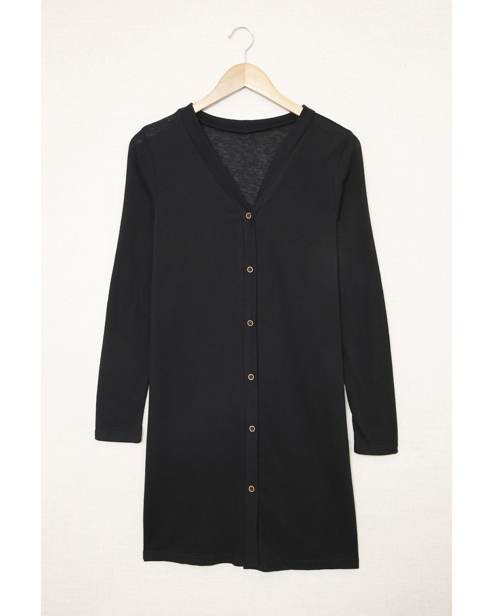 Azura Exchange Black Solid Color Open-Front Buttons Cardigan – 2XL