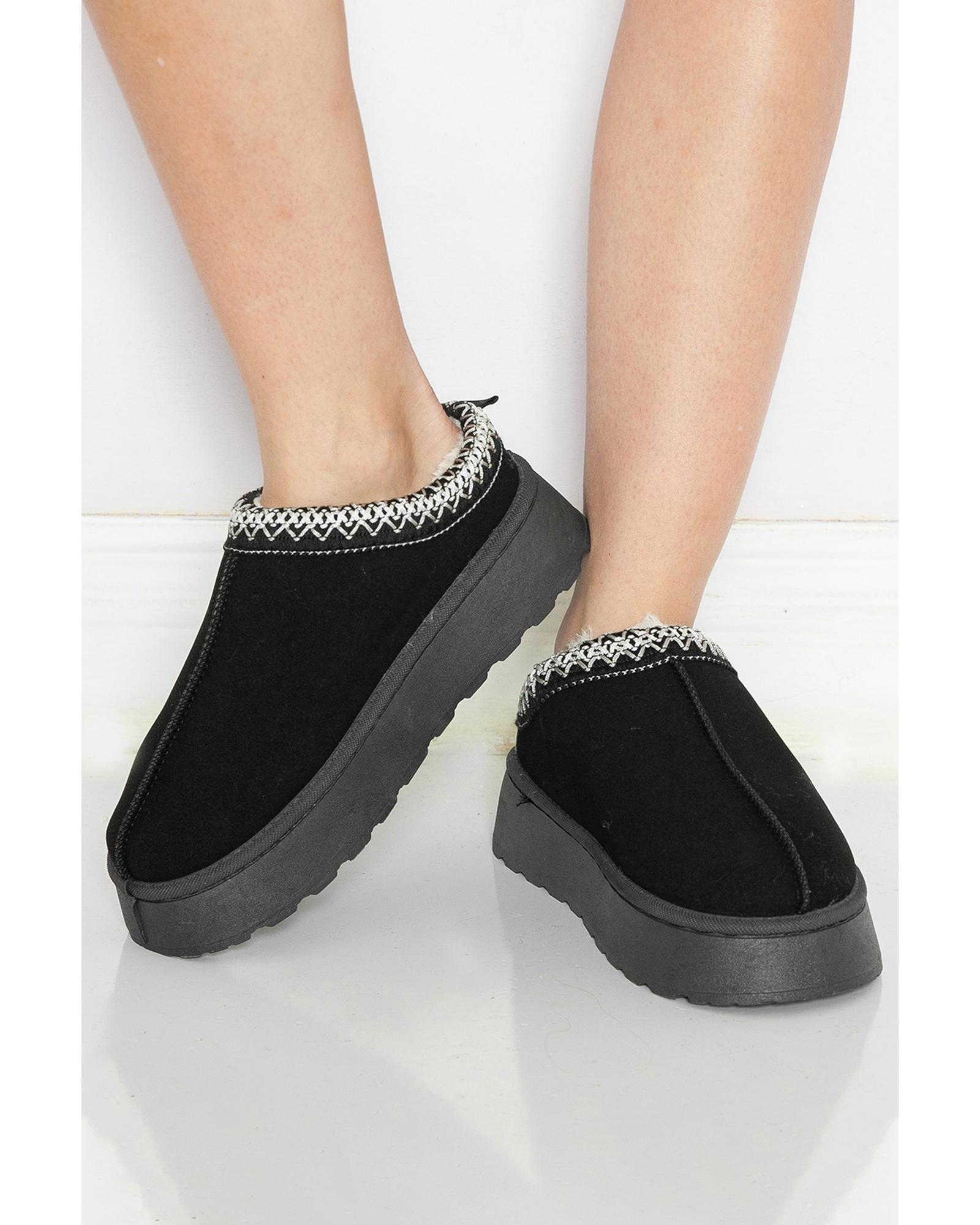 Azura Exchange Black Suede Contrast Print Round Toe Plush Lined Flats – 37 EU
