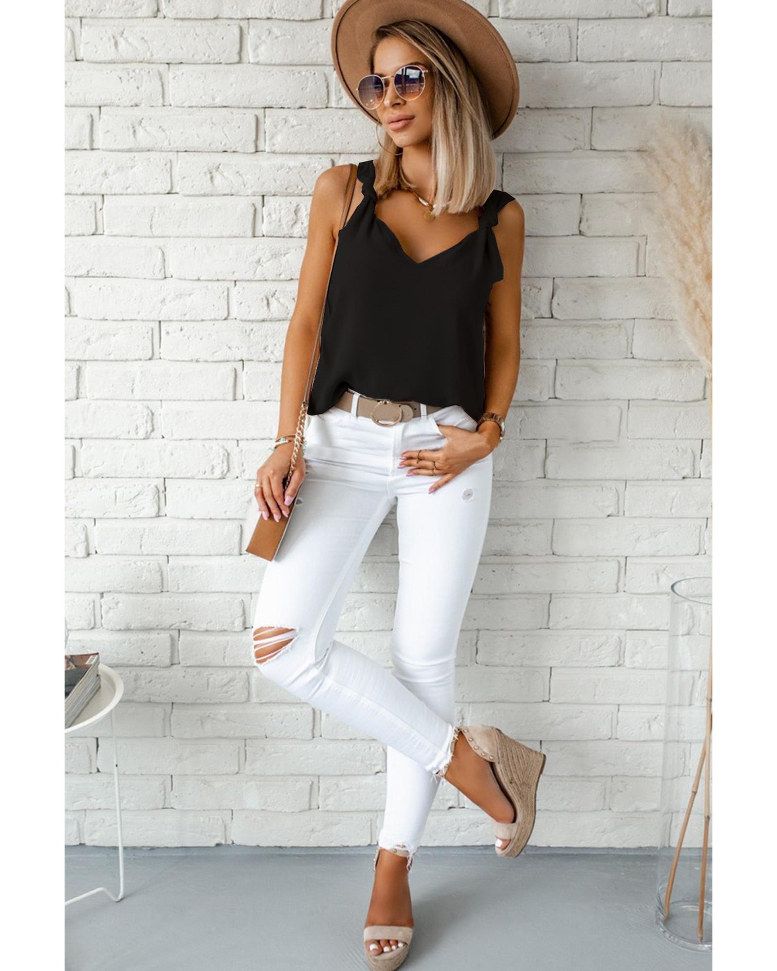 Azura Exchange Black V Neck Knotted Shoulder Vest – M