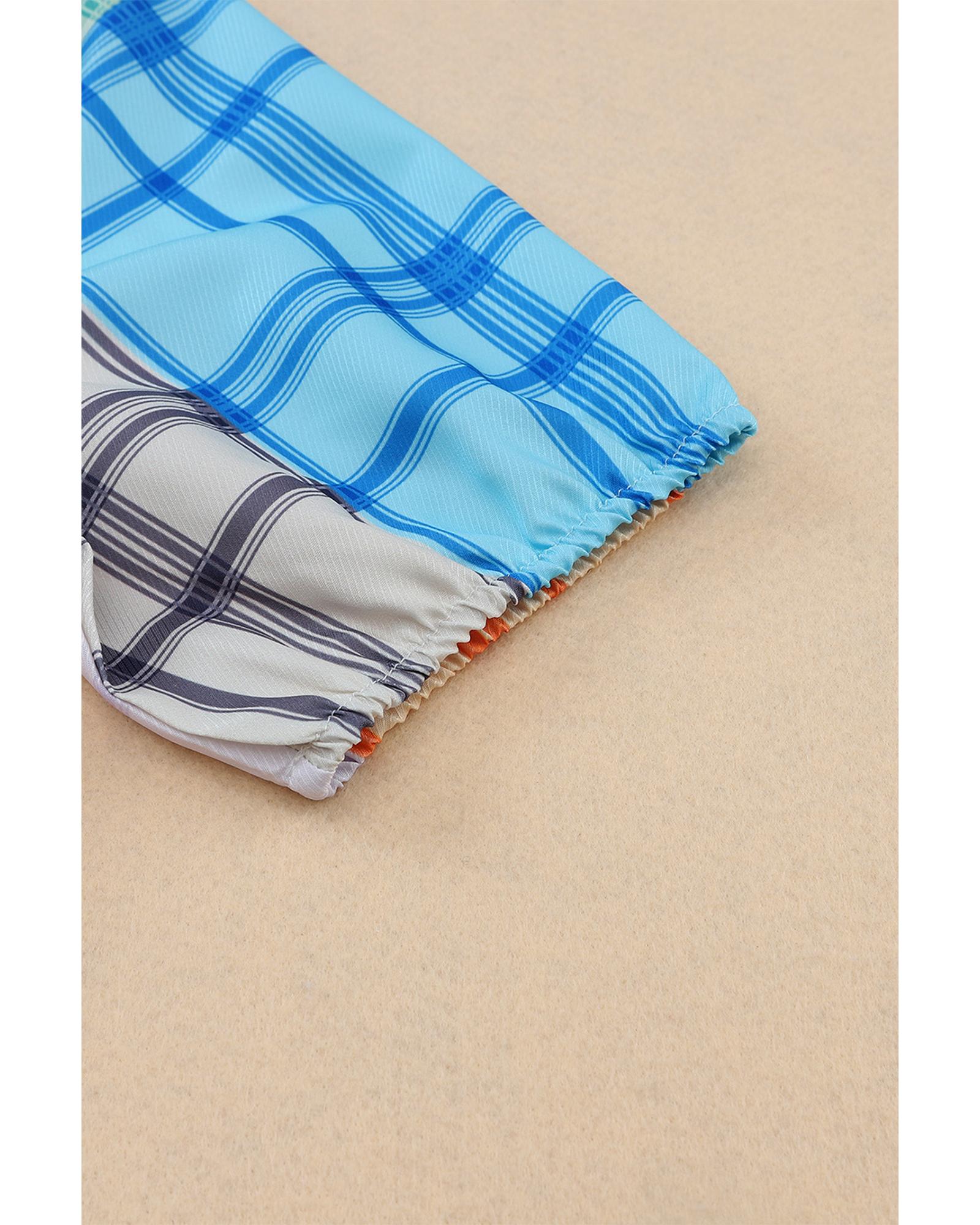 Azura Exchange Bold Plaid Color Block Puff Sleeve Peplum Top - S Original price was: $58.99.Current price is: $31.99.