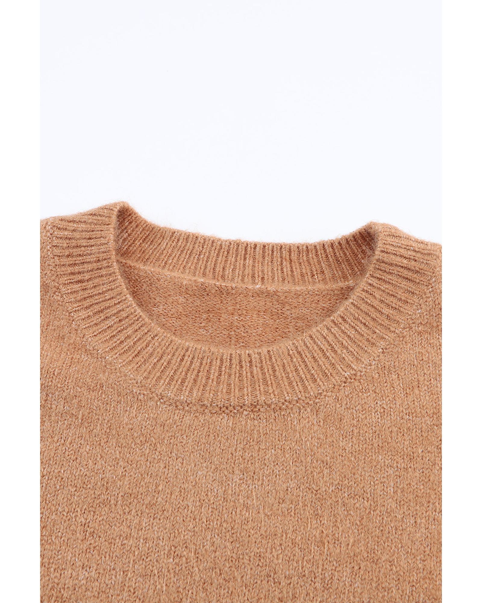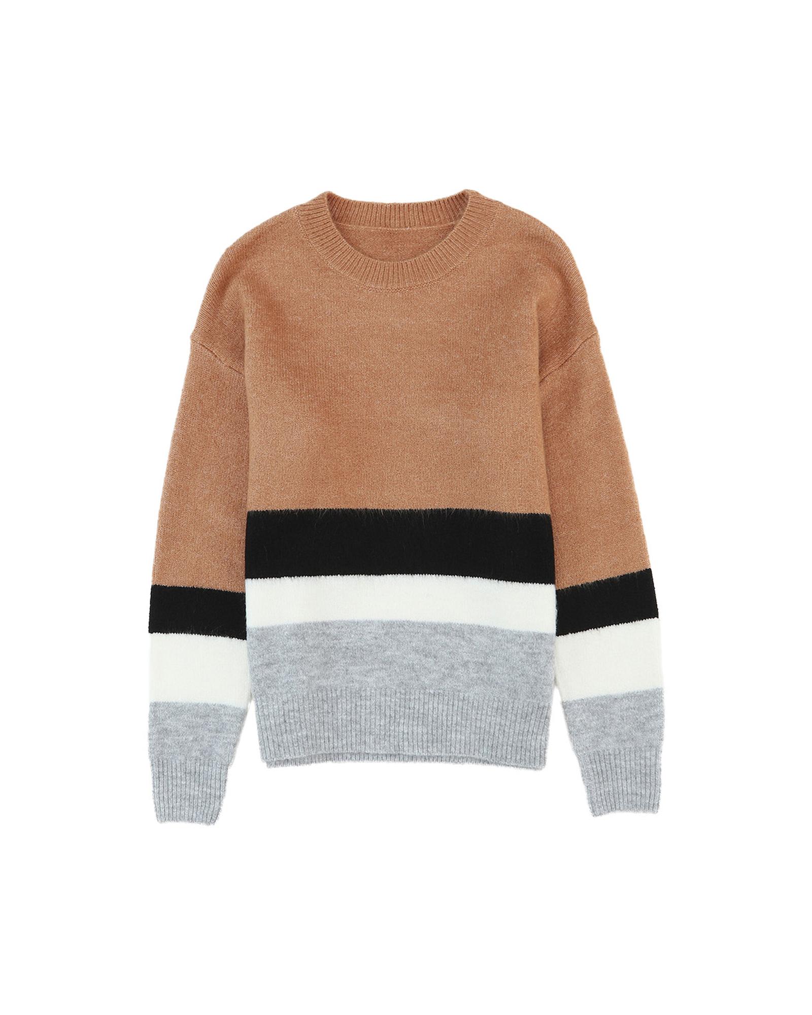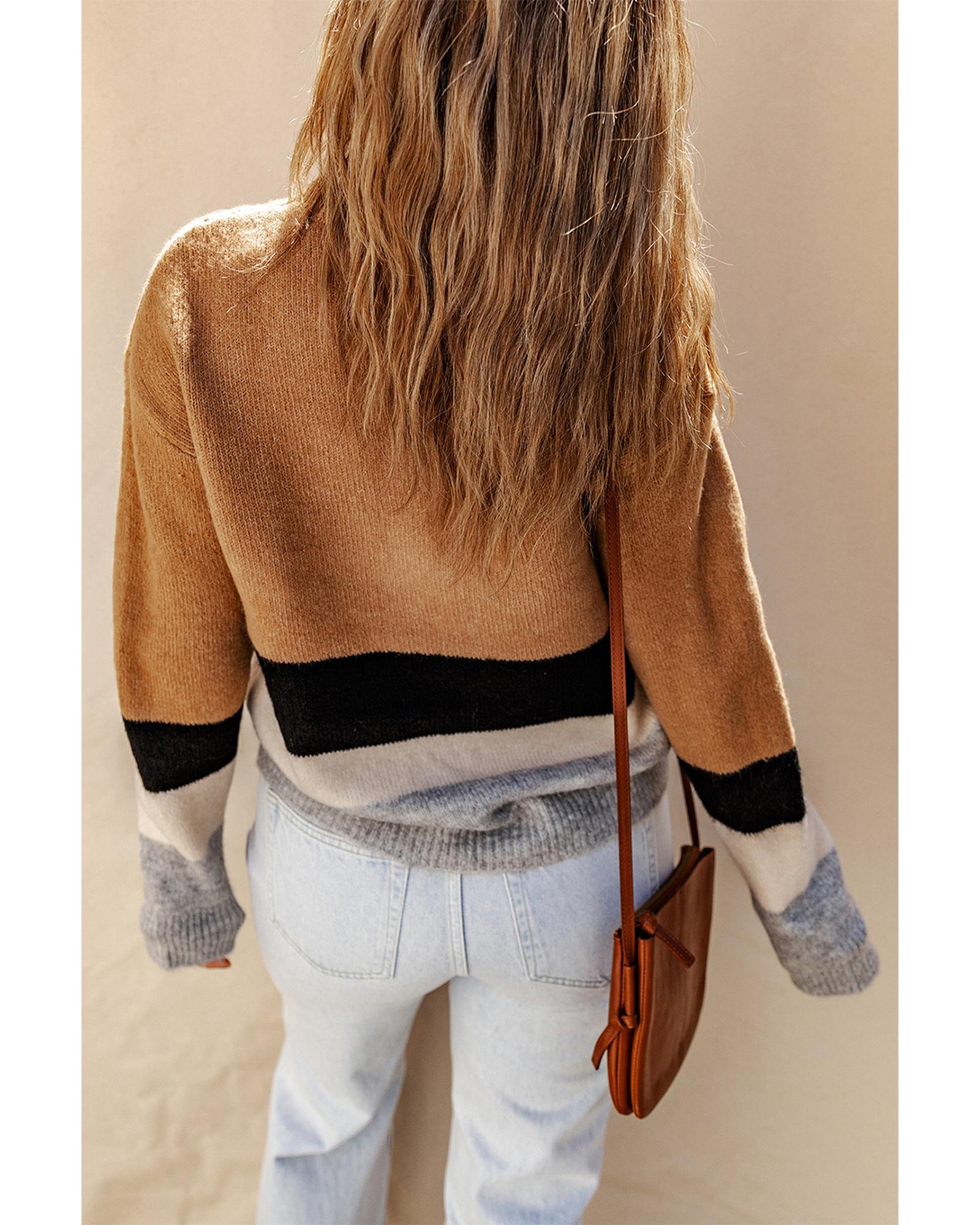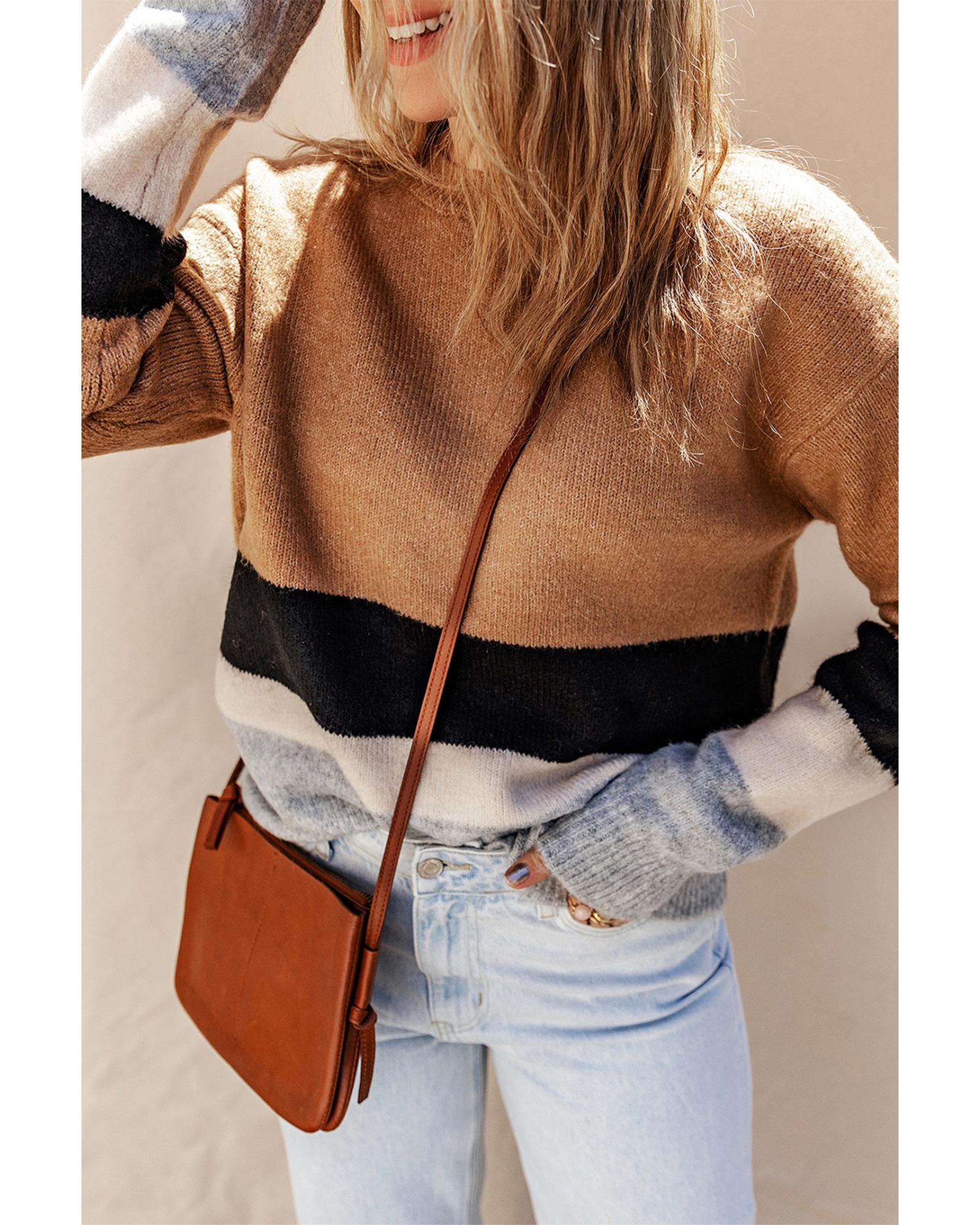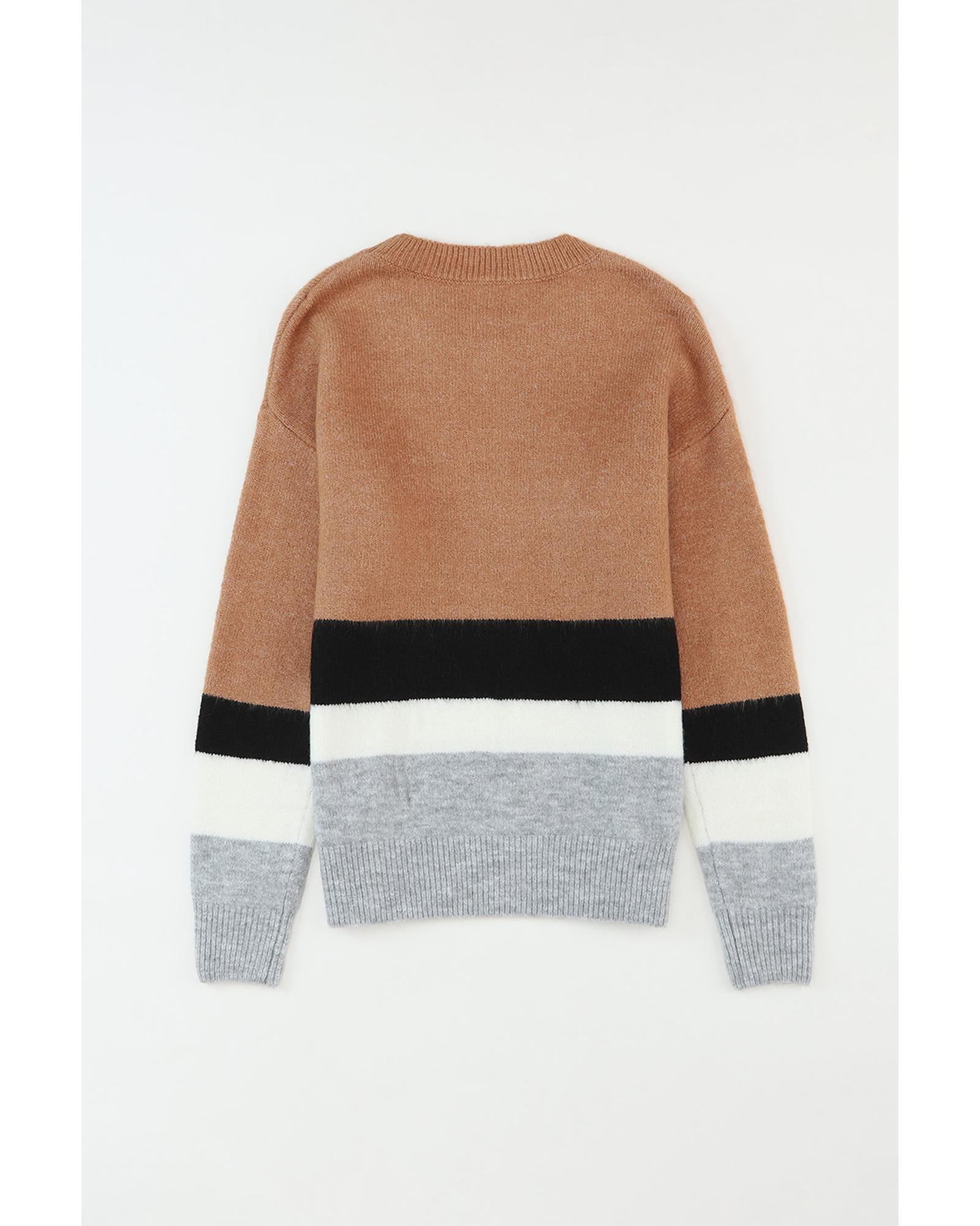 Azura Exchange Brown Color Block Striped Ribbed Knit Sweater – L