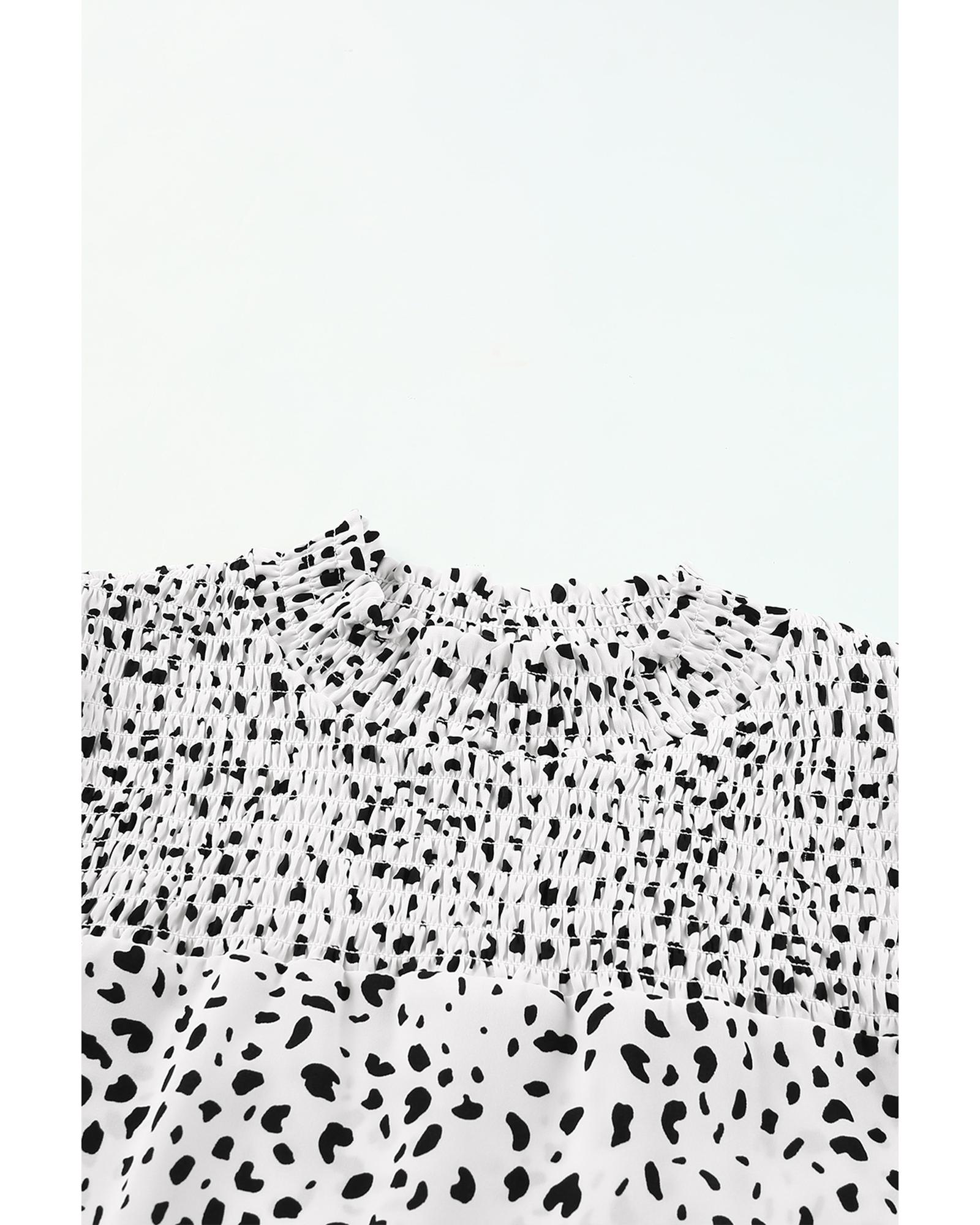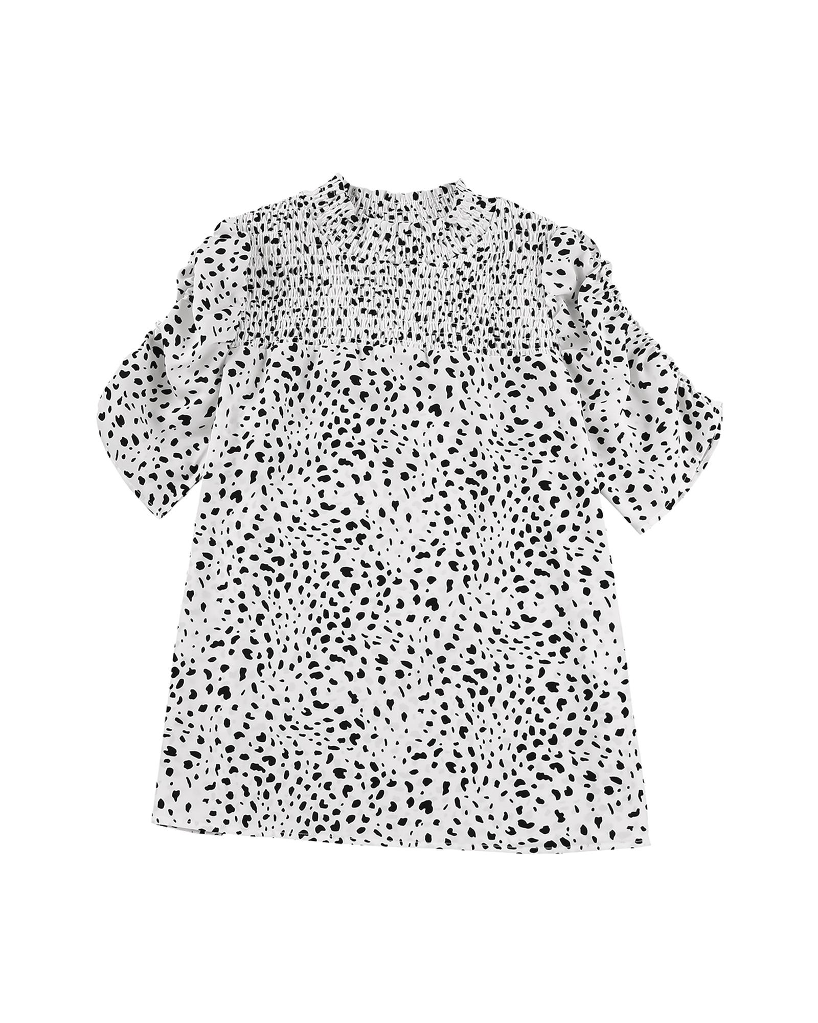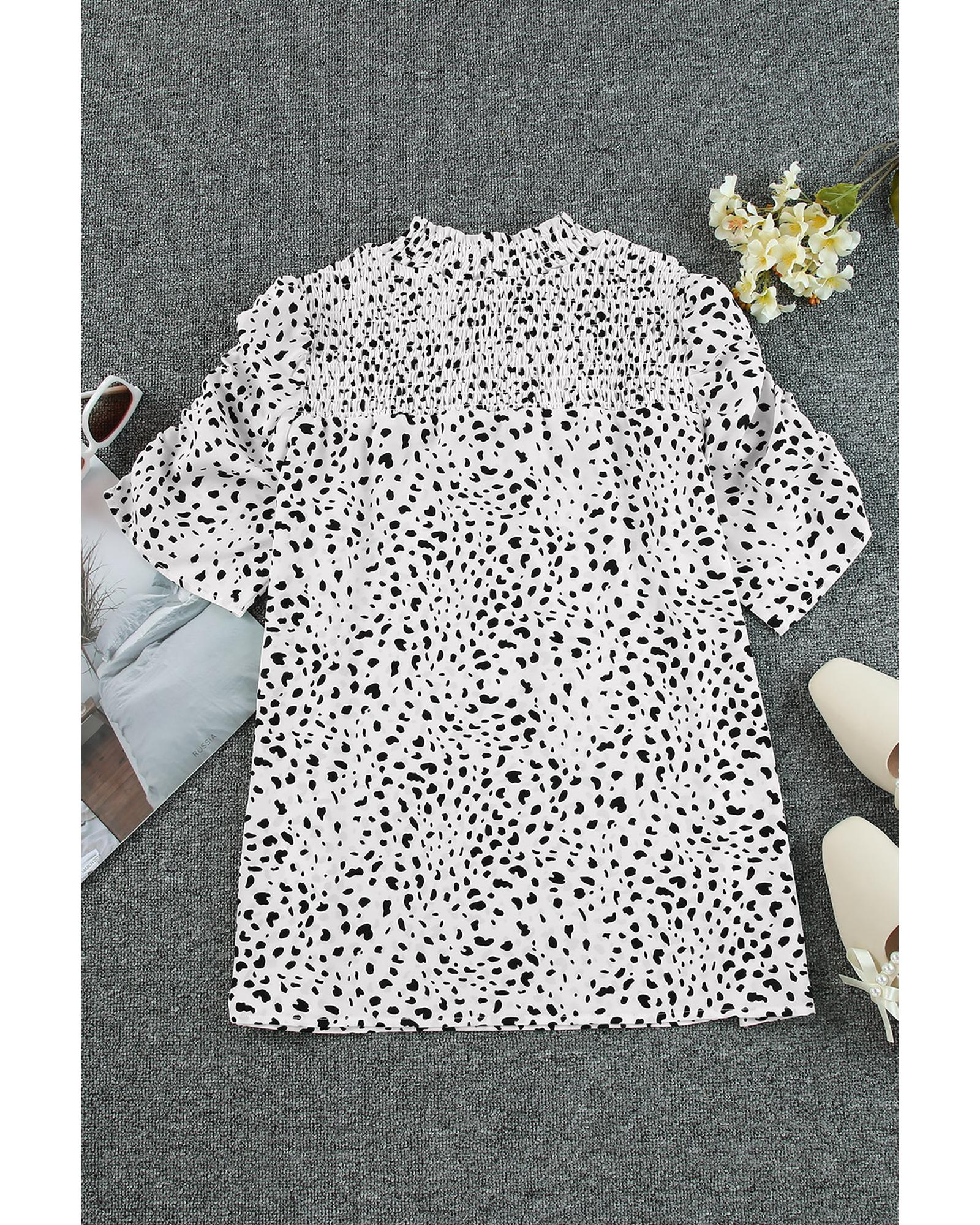 • Luxurious Smocking Detail Bubble Sleeve Blouse