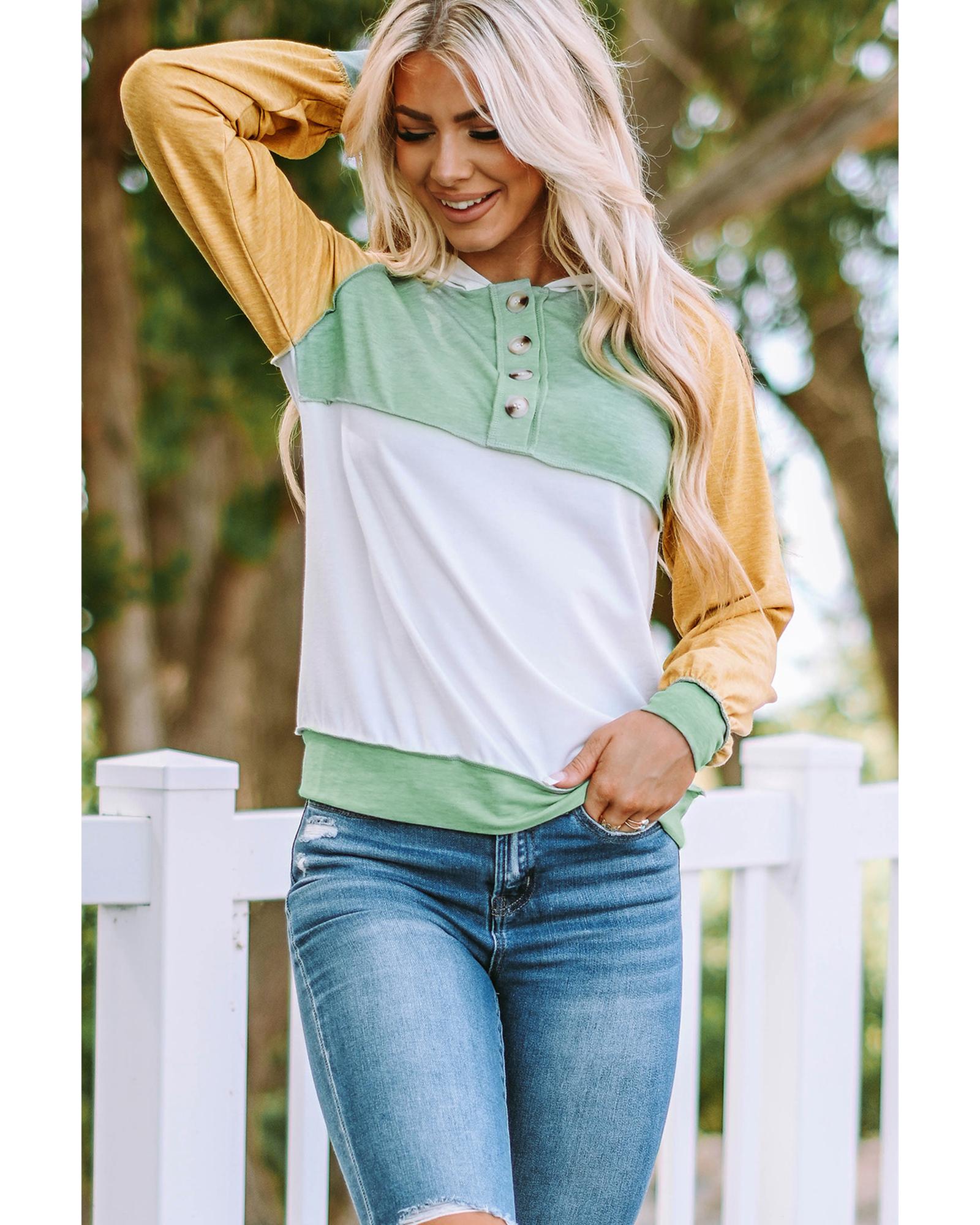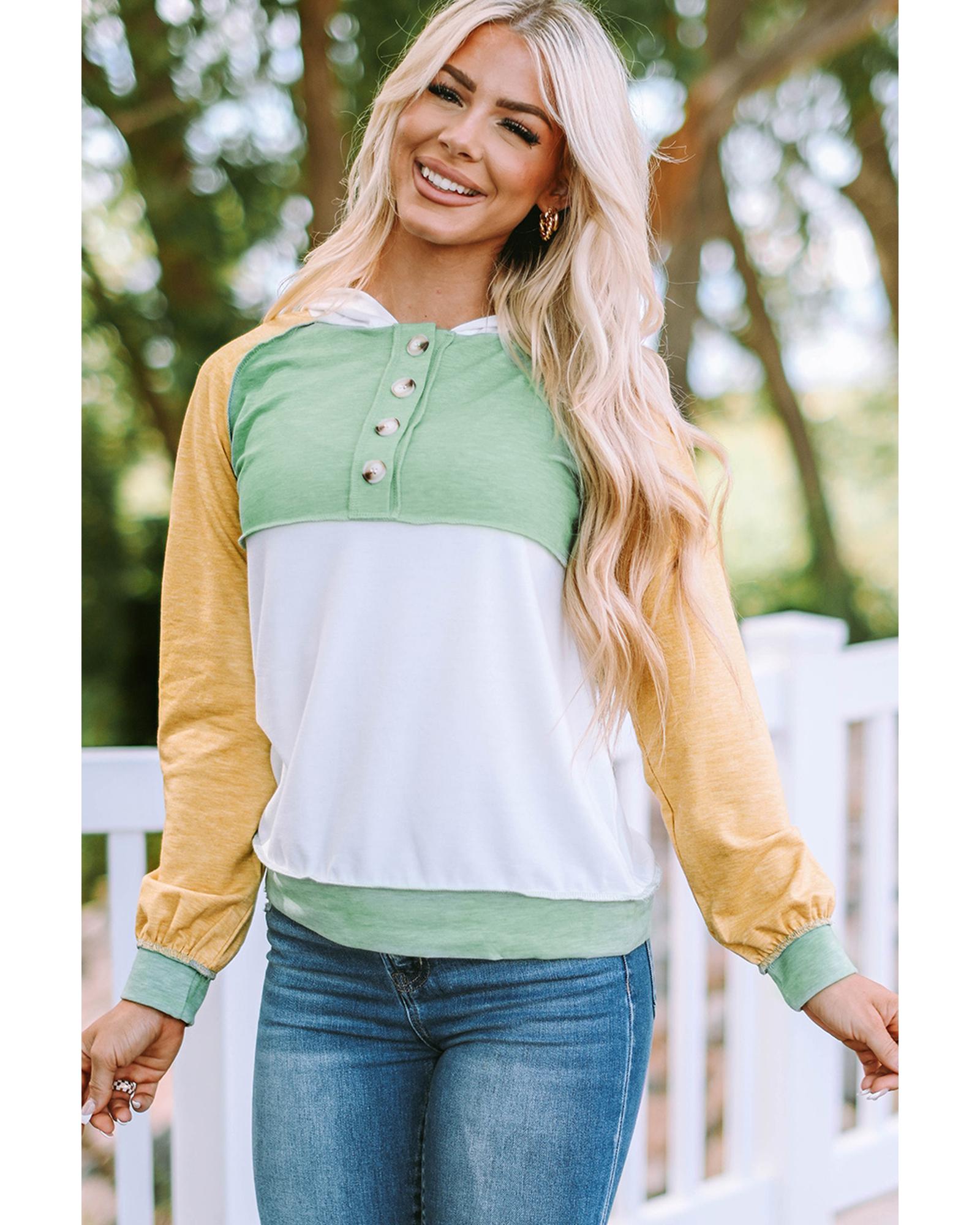 Azura Exchange Button Accent Colorblock Hoodie – S