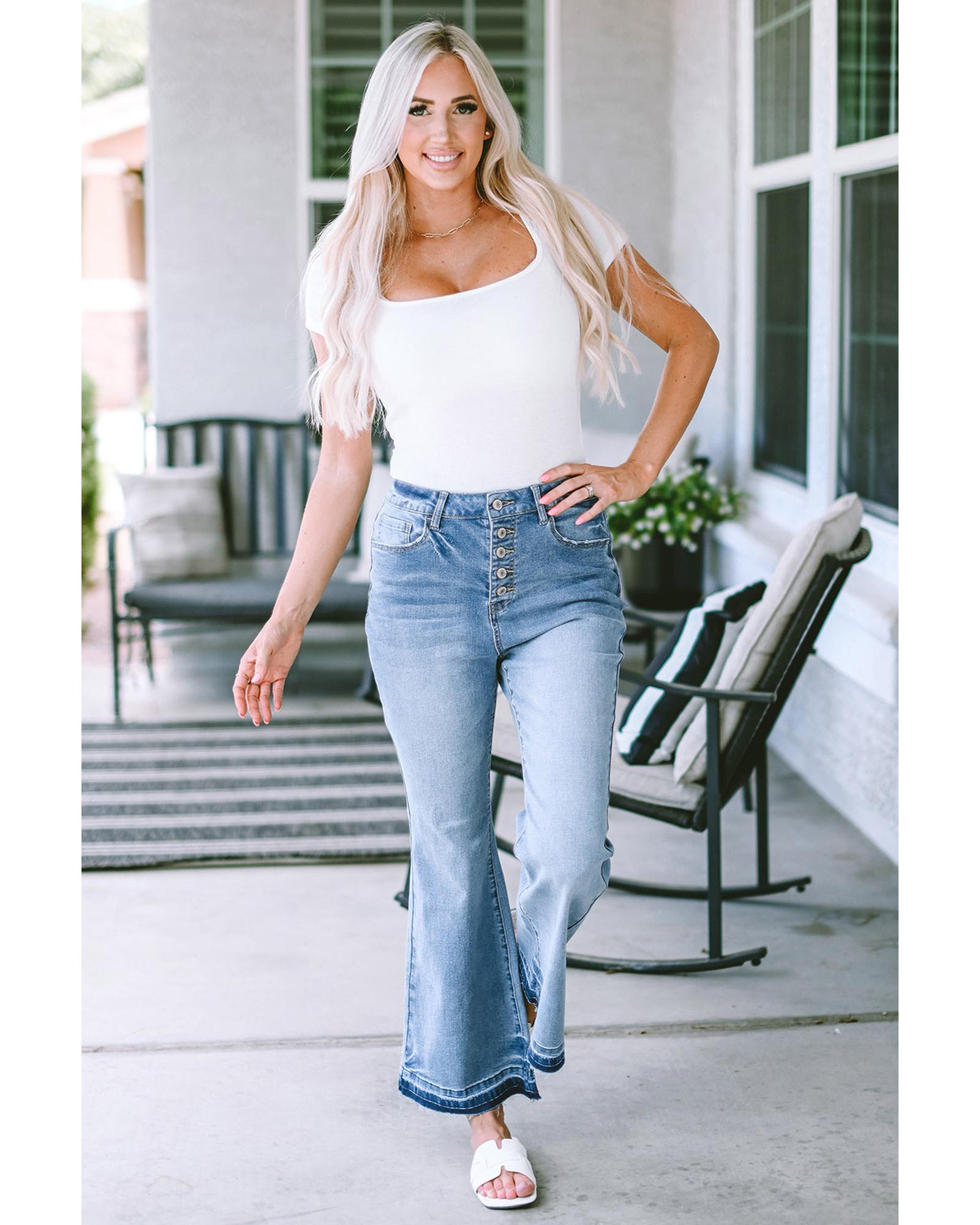 Azura Exchange Buttoned Distressed Flared Jeans – 10 US